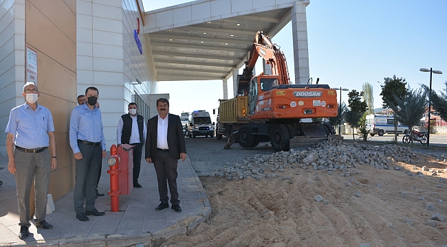 Dinar Devlet Hastanesinin talebi üzerine sedye taşımada yaşanılan sıkıntılar sebebiyle hastane bahçesinde bulunan parke taşları sökülerek yerine sıcak asfalt serimi gerçekleşecek.