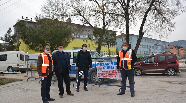 İçişleri Bakanlığının pazar yerlerine yönelik yayınladığı genelgeler ile sıkı önlemler alınmasının ardından ilçemiz de Cumartesi pazarı yerinde zabıta ekiplerimiz bariyer kurarak giriş ve çıkışlarda vatandaşların girişte ellerini dezenfekte ederek maske dağıtımı ve ateş ölçme işlemlerini gerçekleştirdi.