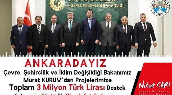 Çevre Bakanımız Kurum'dan projelerimize dev destek Dinar Belediye Başkanımız Nihat Sarı, devam eden Salı Pazarı Yeri projemize ek ödenek verilmesi ve Düden