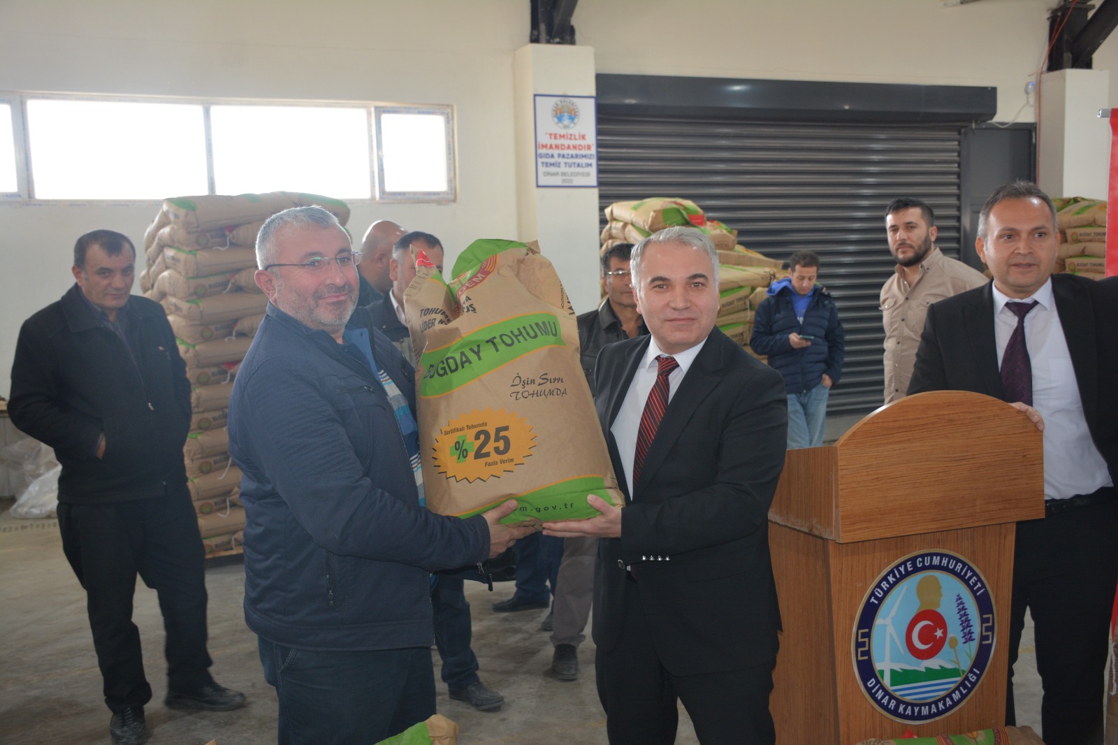 Tohumların dağıtımında Belediye Başkanımız Nihat Sarı, çiftçilerimize bol ve bereketli bir sezon diledi.Dinar Gündem