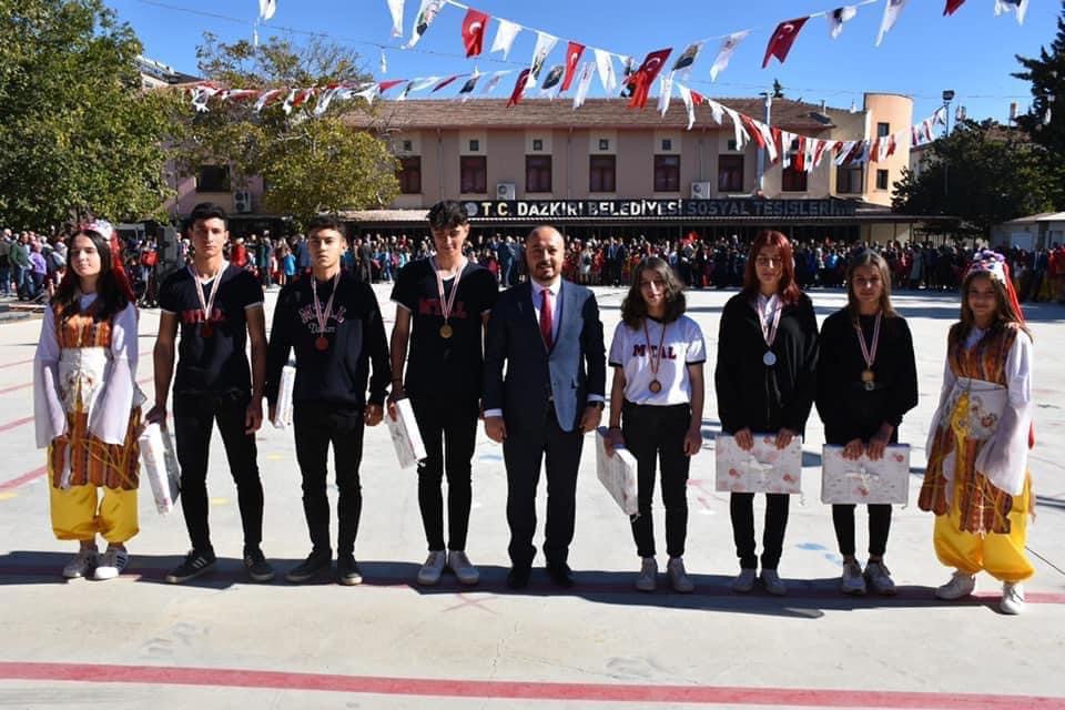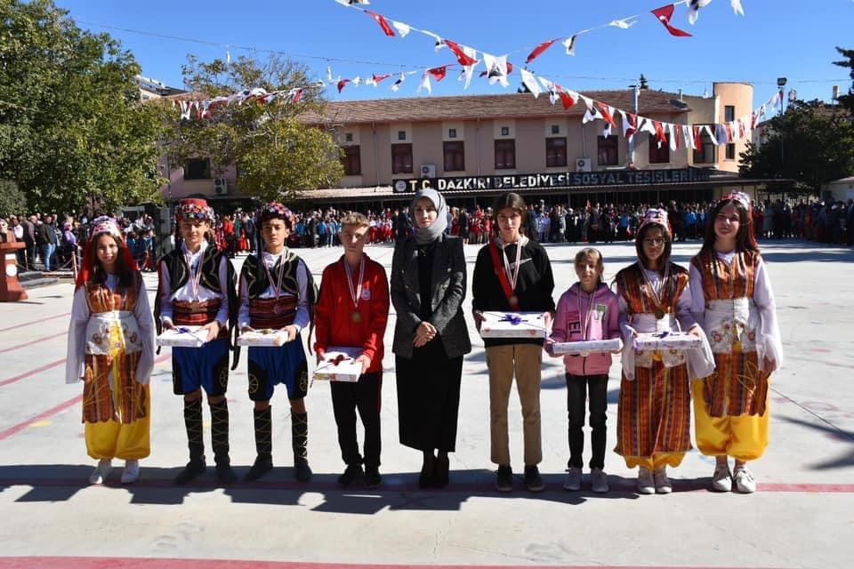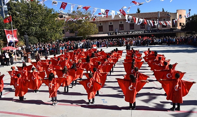 Cumhuriyetimizin 99. Yılı Kutlu Olsun29 Ekim Cumhuriyet Bayramı dolayısıyla ilçemizde düzenlenen kutlamalar Dazkırı Kaymakamımız Sayın Zeliha Uz, Belediye Başkanımız Sayın İsmail Taylan, Cumhuriyet Savcımız Sayın Gaye Yazıcı, ilçe protokolü, öğretmenler, öğrenciler ve halkımızın katılımıyla gerçekleşti. Program saygı duruşu ve İstiklal Marşımızın okunmasıyla başladı, Kaymakamımız ve Başkanımızın bayram kutlamaları sonrasında Kaymakamımız Sayın Zeliha Uz günün anlam ve önemini belirten konuşmasını gerçekleştirdi. Okullarımızın hazırlamış olduğu muhteşem gösteriler ve şiir dinletilerinin ardından yarışmalarda dereceye giren öğrencilerimize hediyeleri takdim edilerek program sona erdi. Belediye Başkanımız İsmail Taylan “Cumhuriyetimizin 99. Yılı kutlamalarımızı coşku içinde gerçekleştirdik. En doğru yönetim şekli olan Cumhuriyet’i kurup bizlere en büyük miras olarak bırakan Ulu Önder Gazi Mustafa Kemal Atatürk’e ve ilçemize yakışır biçimde kutlamamızı sağlayan öğrenci ve öğretmenlerimize minnettarım” dedi.