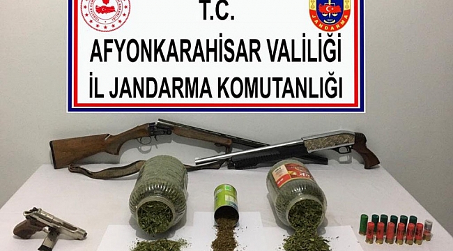Afyonkarahisar İl Jandarma Komutanlığı görevlilerince 21.01.2020 tarihinde, Afyonkarahisar ili Dazkırı İlçesi Kızılören Köyünde ikamet eden T.A. isimli şüpheli şahsın "Uyuşturucu Madde İmal ve Ticareti" yaptığına dair alınan ihbar üzerine şüpheli şahsa ait ev ve eklentilerinde yapılan aramada; 1340 gr. Kubar Esrar olduğu değerlendirilen uyuşturucu madde, (1) Adet 7,65 mm çapınca ruhsatsız tabanca, (1) Adet seri numarası kazınmış MAGNUM Marka ruhsatsız Pompalı Av Tüfeği, (1) Adet ruhsatsız KRAL Marka Tek Kırma Av Tüfeği ele geçirilmiştir. Olay ile ilgili olarak yakalanan T.A. isimli şüpheli hakkında, gerekli yasal işlemler başlatılarak adli makamlara sevk edilmiştir.Afyonkarahisar Valiliği
