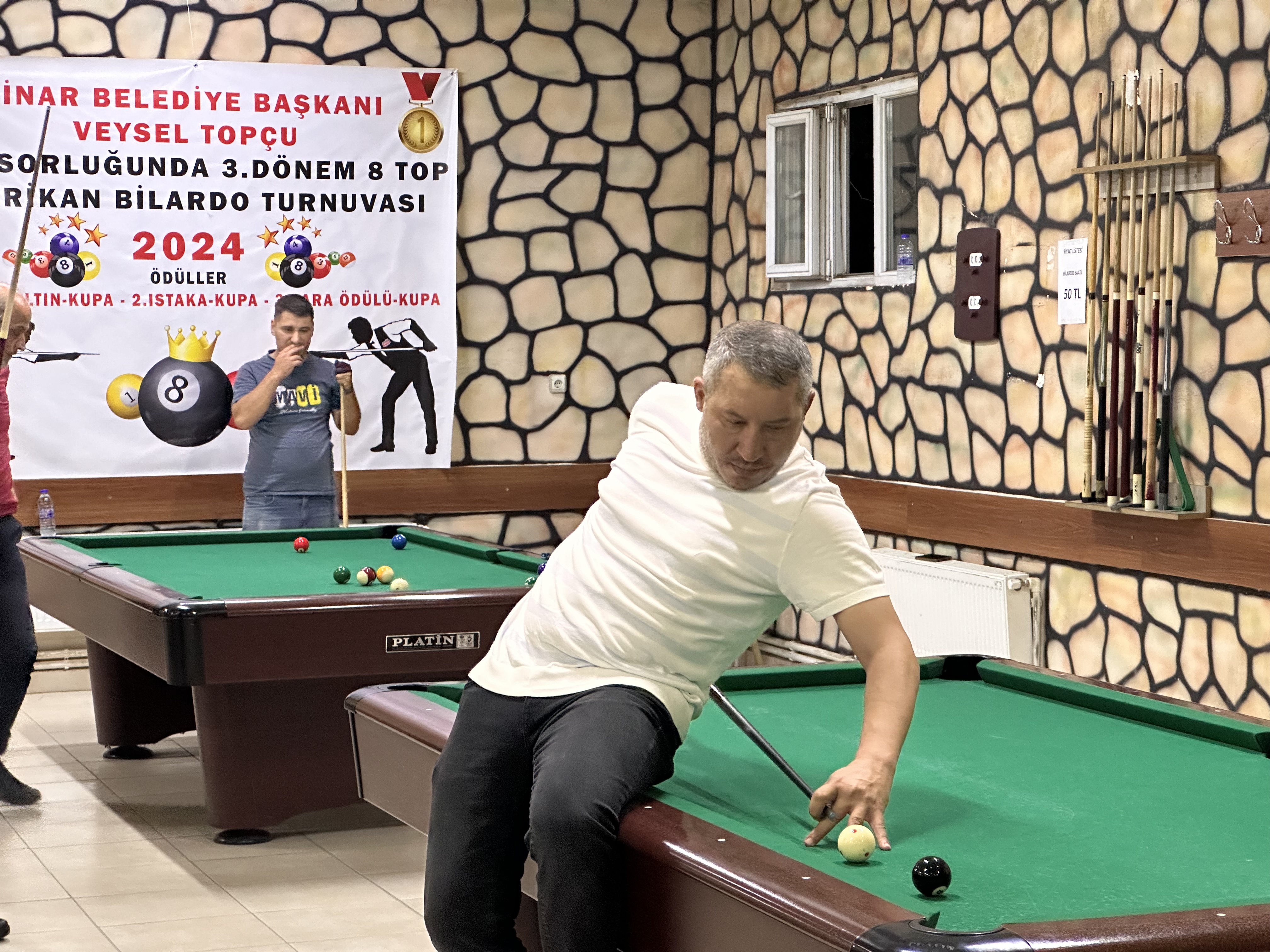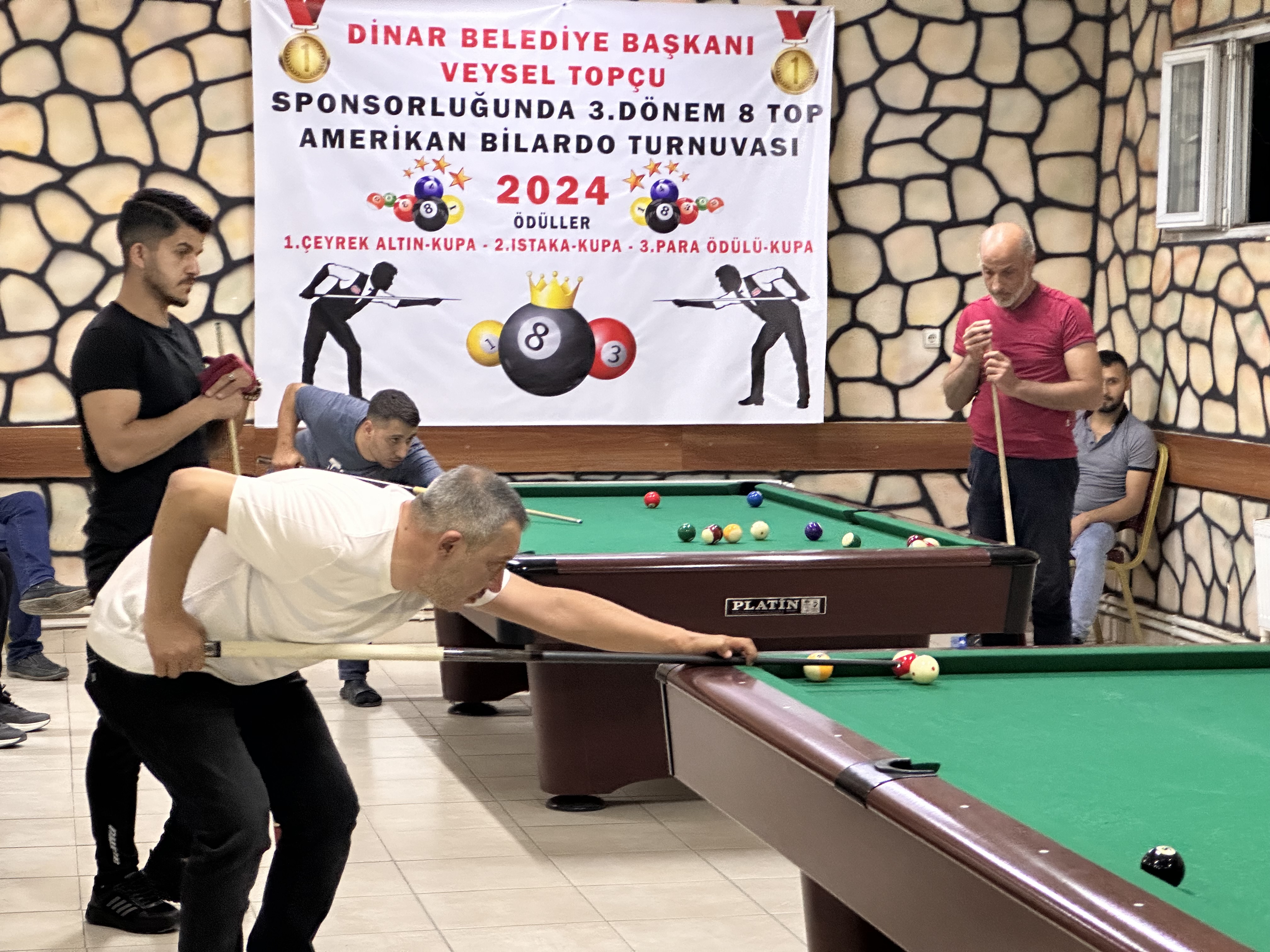 Dinar Belediye Başkanımız Veysel Topçu Sponsorluğunda Düzenlenen 3.Dönem Amerikan 8 Top Bilardo Turnuvası Başkanımızında Oyuncu Olarak Katılımıyla Başladı.