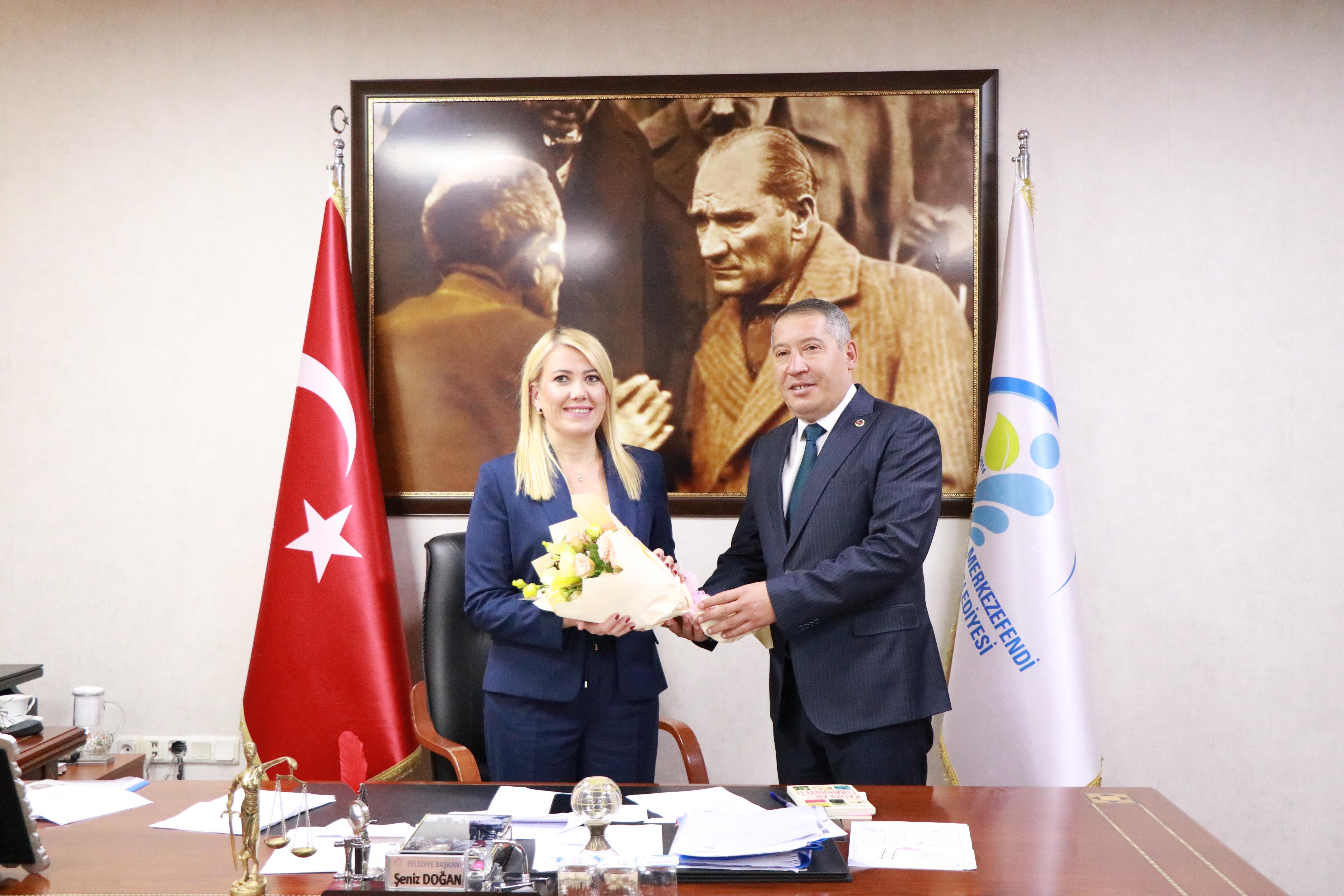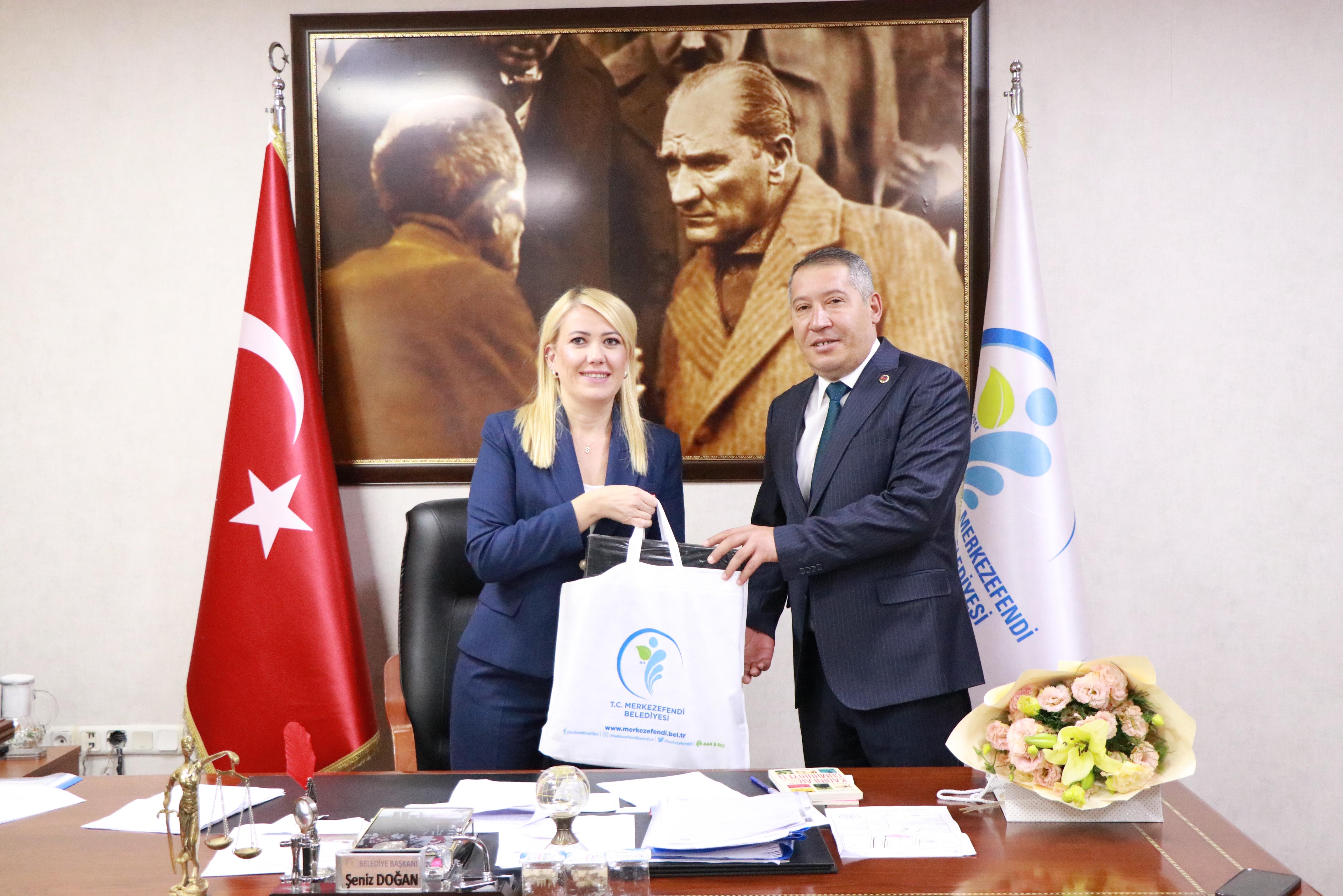 Dinar Belediye Başkanımız Veysel Topçu, Merkezefendi Belediye Başkanımız Şeniz Doğan'ı makamında ziyaret etti.