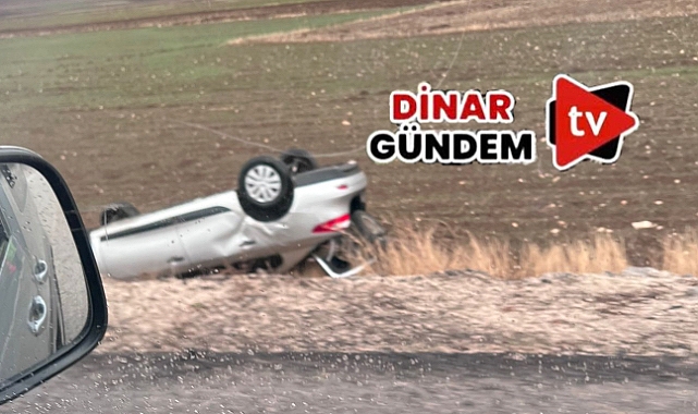 Dinar Çay - Konya Çöl Ovası yolunda meydana gelen trafik kazasında bir otomobilin direksiyon hakimiyetini kaybetmesi sonucu araç şarampole yuvarlanarak ters döndü.