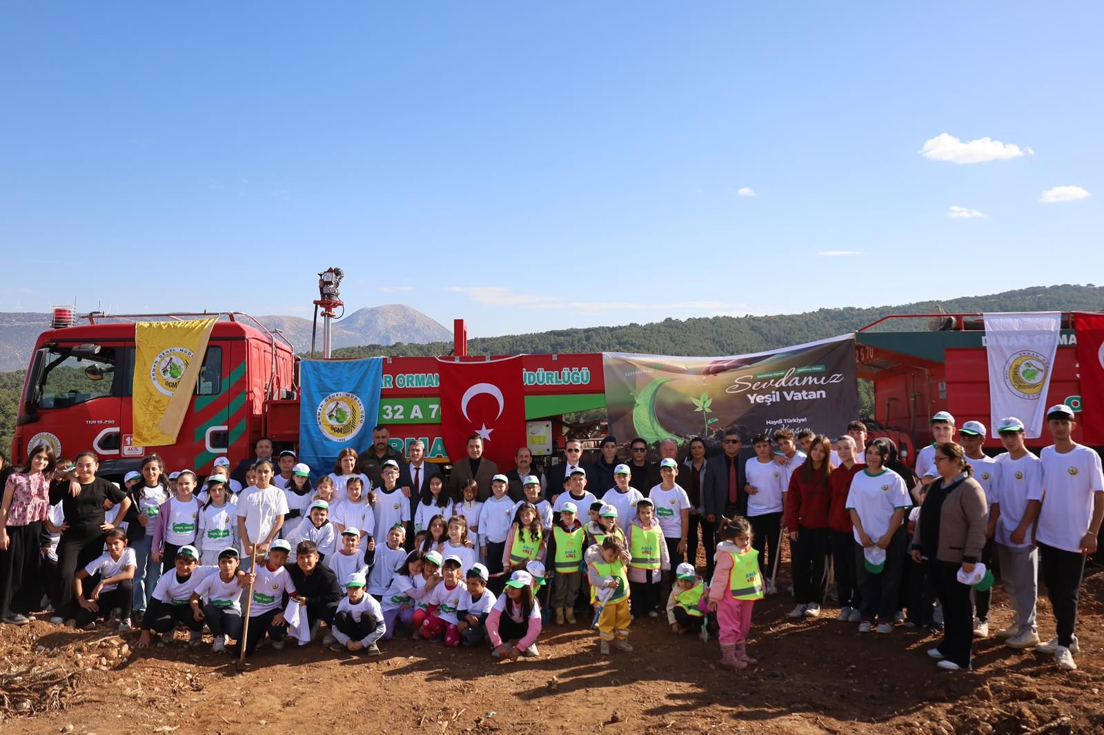 11 Kasım Milli Ağaçlandırma Günü dolayısıyla “Geleceğe Nefes, Dünyaya Nefes” temasıyla Dinar’da fidan dikim etkinliği gerçekleştirildi.Pınarlı Köyü Sofular Mevkii’nde düzenlenen programa, Kaymakamımız Hasan UĞUZ, Belediye Başkanımız Veysel TOPÇU, Cumhuriyet Başsavcımız Emre VURMAZ, İlçe Jandarma Komutanımız Hamza TUNÇ, İlçe Emniyet Müdürümüz Bayram ÖĞÜT, Tatarlı Belediye Başkanı Musa KAYER, Orman İşletme Müdürümüz Ahmet GÜRBÜZ, kurum amirleri, öğretmenler, öğrenciler ve vatandaşlar katıldı.Etkinlikte geleceğimizin teminatı çocuklarla birlikte fidanlar toprakla buluşturuldu. Katılımcılar doğaya katkı sağlamanın ve çevre bilincini güçlendirmenin mutluluğunu yaşarken, Dinar genelinde yeşil alanların artırılmasına yönelik farkındalık oluşturuldu.Gelecek nesillere daha temiz bir çevre bırakmak amacıyla yürütülen etkinlikte, yüzlerce fidan toprakla buluştu ve “yeşil Dinar” hedefi doğrultusunda bir adım daha atılmış oldu.Dinar Gündem