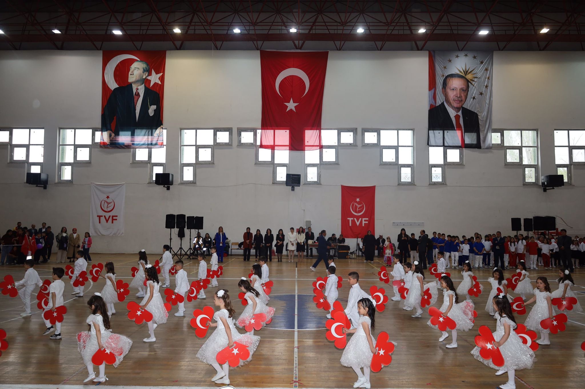 23 Nisan etkinlikleri, çocukların sergilediği renkli görüntüler ve bayram coşkusuyla sona erdi.