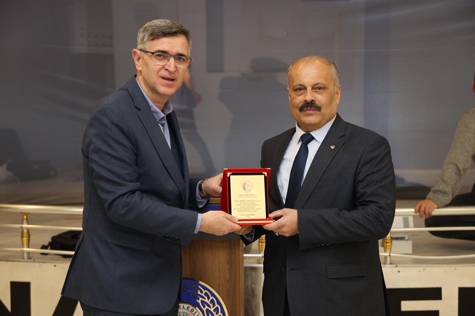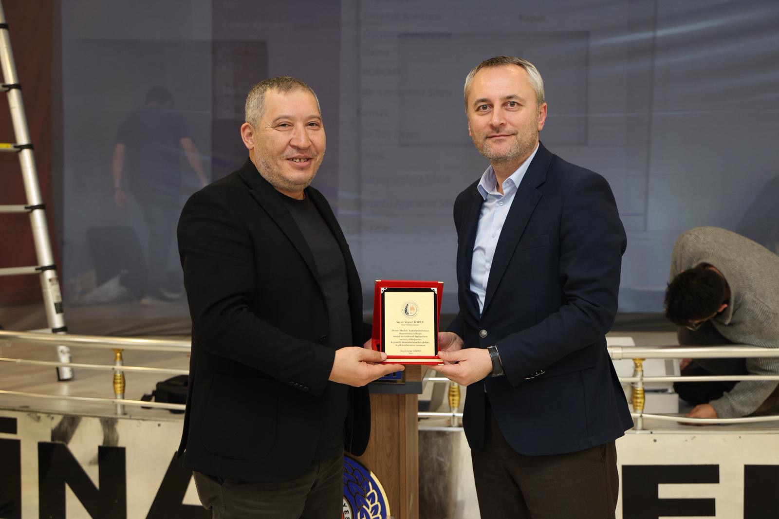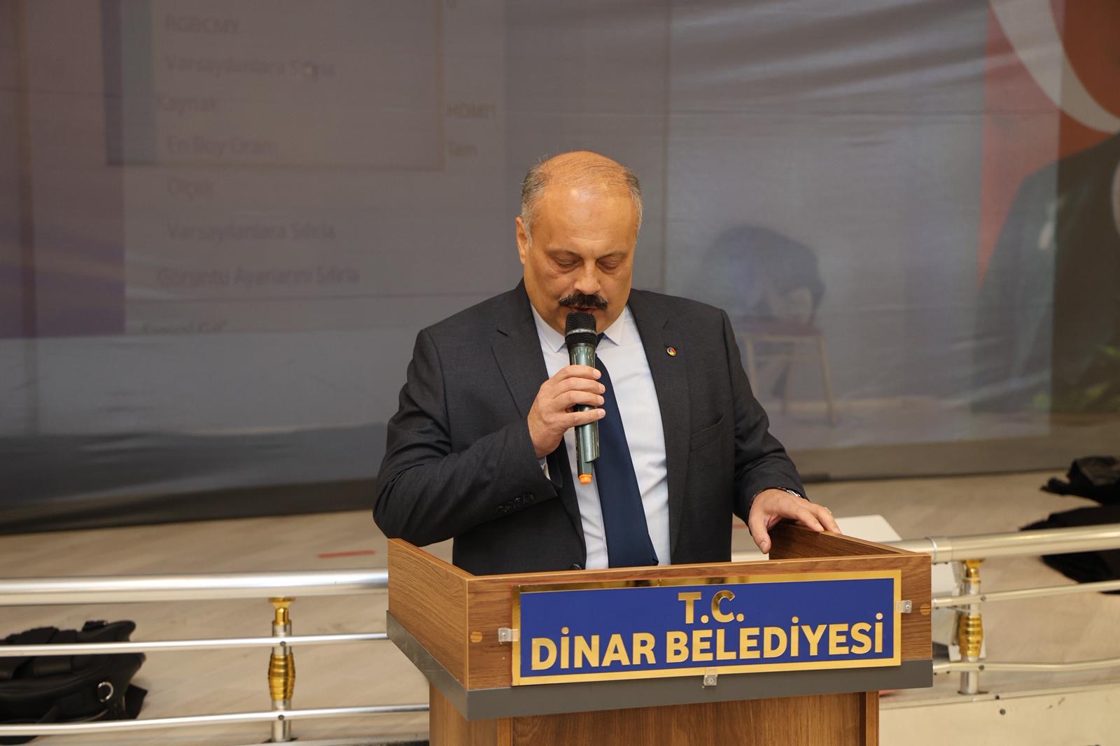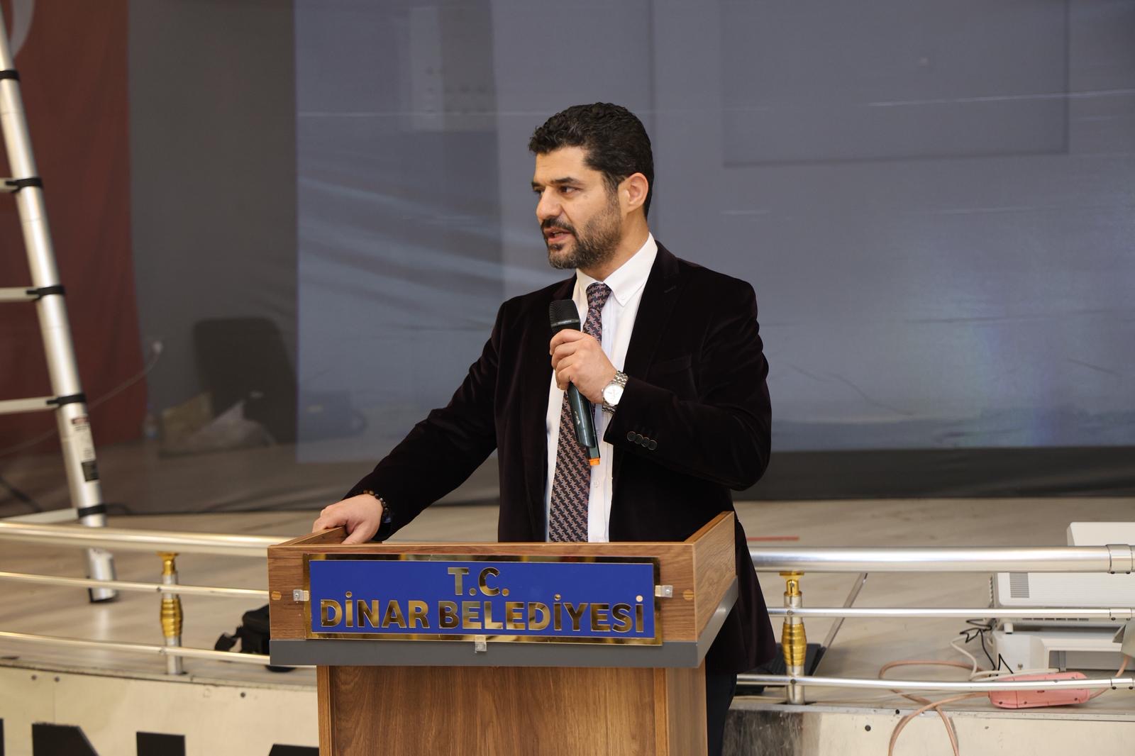 Afyon Kocatepe Üniversitesi Dinar Meslek Yüksekokulu tarafından düzenlenen iftar programı ve “Firavunla Yüz Yüze” adlı tiyatro gösterisi yoğun katılımla gerçekleştirildi. Programa Dinar Belediye Başkanımız Veysel Topçu da katılım sağladı.İftar programında, etkinliğe sağladıkları desteklerden dolayı Belediye Başkanımız Veysel Topçu ile Dinar Ticaret ve Sanayi Odası Yönetim Kurulu Başkanımız Veli Özcan’a plaket takdim edildi.Plaketler; İktisadi ve İdari Bilimler Fakültesi Dekanı Prof. Dr. Gökhan Demirtaş tarafından Belediye Başkanımız Veysel Topçu’ya, Rektör Danışmanı İsa Sağbaş tarafından ise Dinar Ticaret ve Sanayi Odası Yönetim Kurulu Başkanımız Veli Özcan’a takdim edildi.Program kapsamında sahnelenen “Firavunla Yüz Yüze” adlı tiyatro oyunu izleyiciler tarafından ilgiyle takip edildi. Tiyatro gösterisinin sonunda ünlü oyuncu Ahmet Yenilmez’e Suçıkan maketi ve plaket takdim edildi.Suçıkan maketi Dinar Belediyesi Başkan Vekilimiz Ali Uluağaç, plaket ise Dinar Meslek Yüksekokulu Müdürümüz Doç. Dr. İsmail Ciğerci tarafından takdim edildi.Program, hatıra fotoğraflarının çekilmesiyle sona erdi.Dinar Belediyesi Haber Bülteni