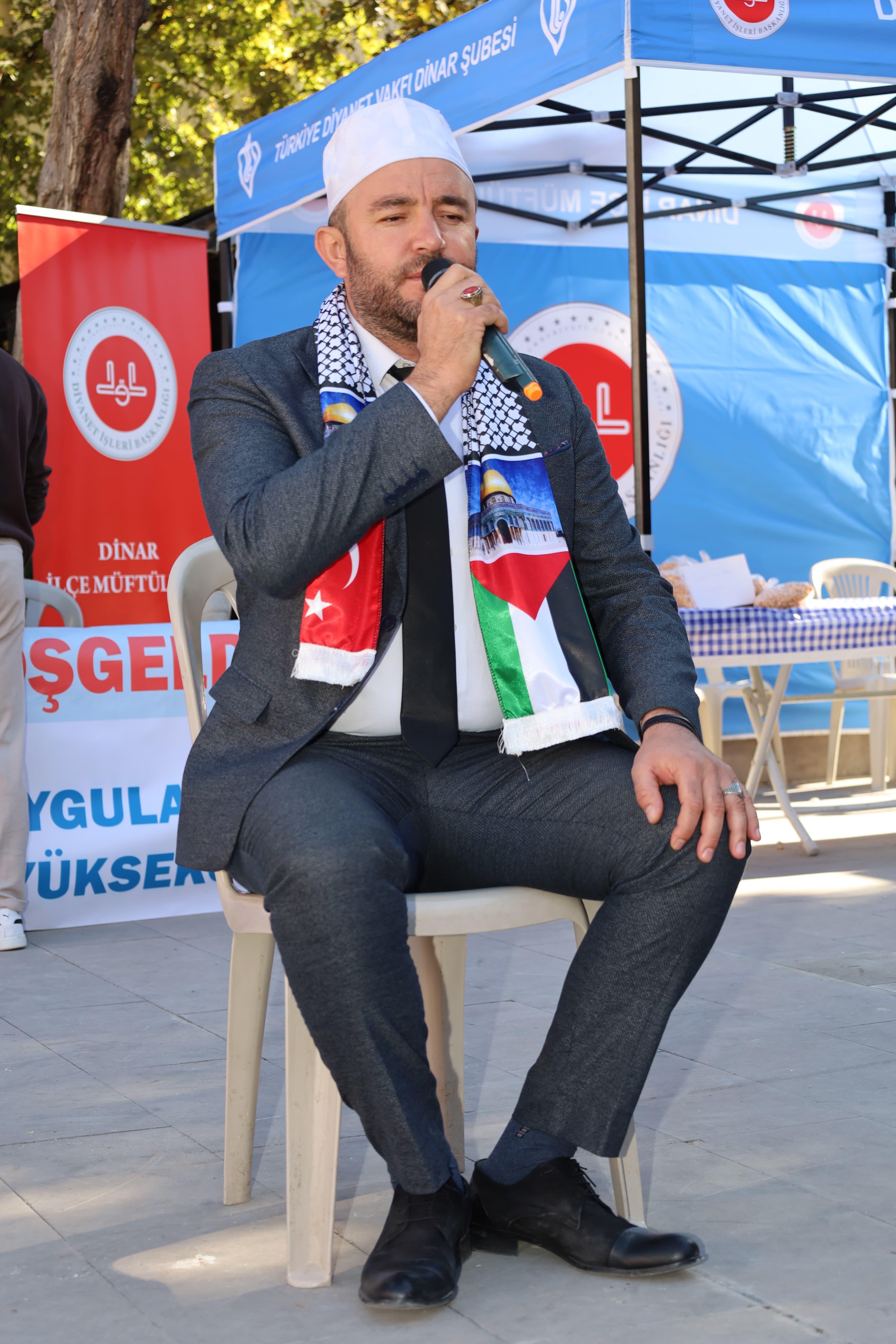 Dinar Kaymakamlığı ve İlçe Müftülüğü öncülüğünde, Filistin ve Gazze’deki ihtiyaç sahiplerine destek amacıyla düzenlenen kermes, Cumhuriyet Meydanı’nda vatandaşların yoğun ilgisiyle başladı.05-06 Kasım 2025 tarihlerinde gerçekleştirilen etkinliğin açılışına; Kaymakamımız Hasan UĞUZ ile birlikte ilçe protokolü katıldı.Açılışın ardından Kaymakamımız ve protokol üyeleri stantları gezerek gönüllüler tarafından hazırlanan ürünleri inceledi, emeği geçenlere teşekkür etti.Kermesten elde edilecek gelirin tamamının, Filistin ve Gazze’deki mazlumlara ulaştırılacağı belirtildi.Dinar halkının yoğun katılım gösterdiği etkinlik, ilçede dayanışma ruhunun önemli bir örneği olarak kayıtlara geçti.Dinar Gündem Gazetesi