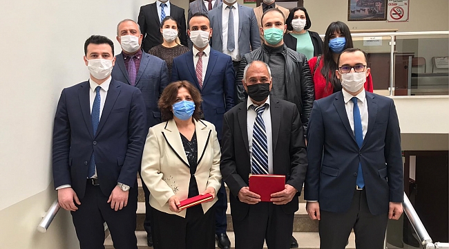 EMEKLİ OLAN PERSONELLERİMİZE VEDA Dinar Adliyesinde görev yapan Santral Memuru Aynur SERTÇELİK ile Hizmetli Abdullah BİLİCİ’nin emekli olmalarından dolayı Cumhuriyet Başsavcımız Selman ESKİLER, Hakim Emrah OĞUZ ve Yazı İşleri Müdürleri ile bir araya gelinerek kendilerine plaket takdim edildi. Dinar Adliyesi olarak emekli olan personellerimize adliyemizdeki hizmetlerinden ötürü teşekkür eder, emeklilik hayatlarında sağlık, mutluluk ve esenlikler dileriz.(19.03.2021)