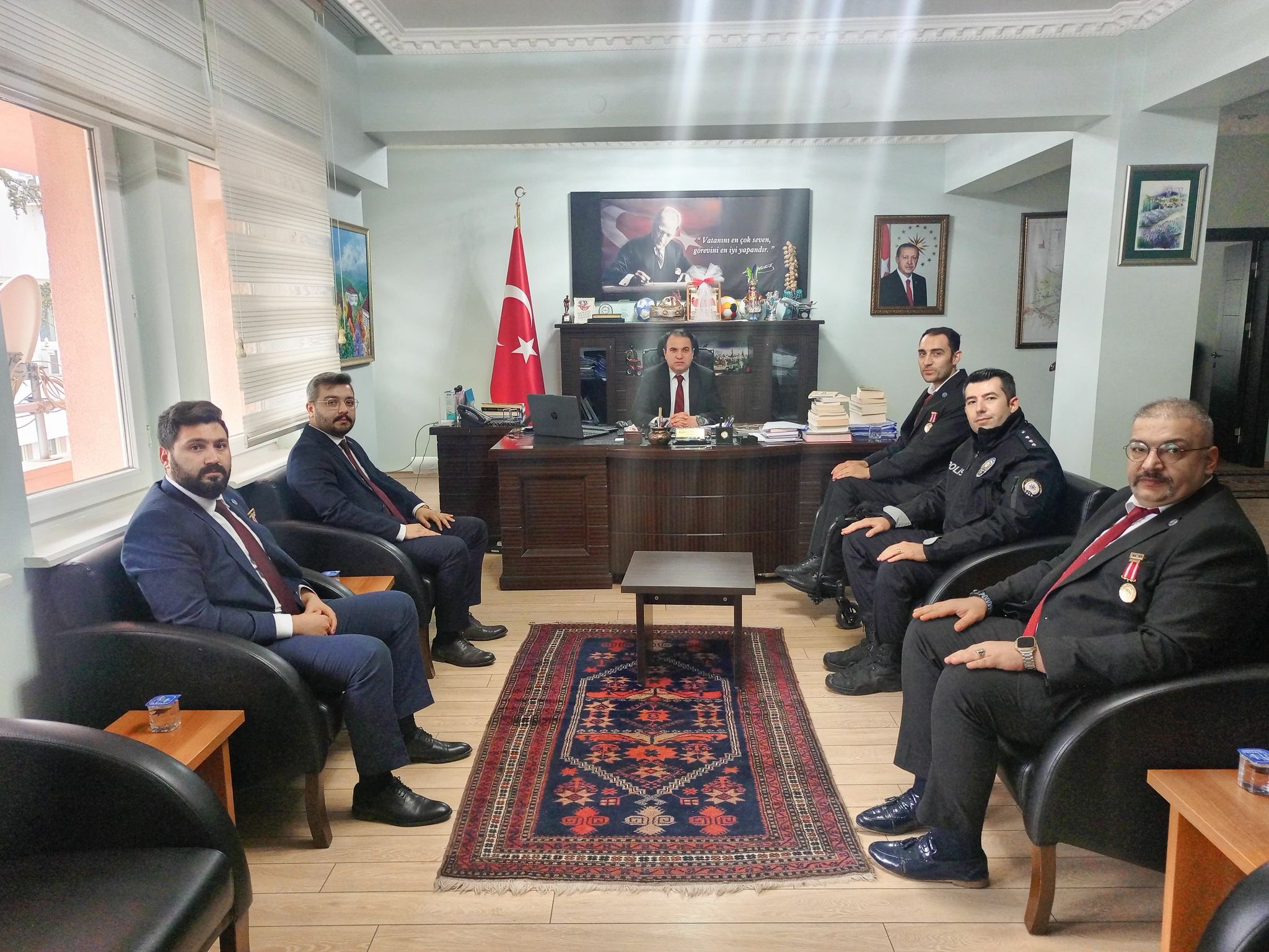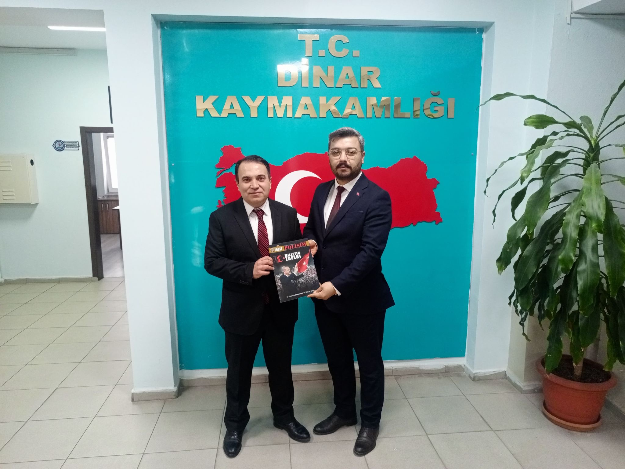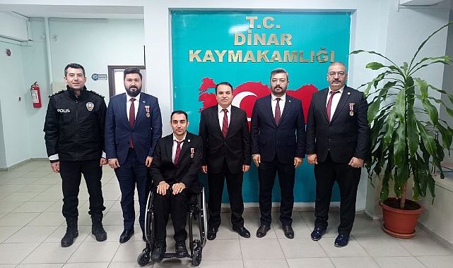 Emniyet Teşkilatı Vazife Malulü ve Şehit Aileleri Vakfı (EMŞAV) Afyonkarahisar İl Başkanı Gazi Polis Memuru Mehmet ÖZDEMİR, İl Başkan Yardımcısı Gazi Polis Memuru Nazım OKYAY, Yönetim Kurulu Üyesi Gazi Polis Memuru Yasin AYDOĞDU ve Yönetim Kurulu Üyesi Gazi Polis Memuru İsmail KUMRU Kaymakamımız Kemal DURU’yu ziyaret ettiler.Ziyarette duyduğu memnuniyeti ifade Kaymakam Duru, Emniyet Teşkilatı Vazife Malulü ve Şehit Aileleri Vakfı İl Başkanı Özdemir ve yönetimine teşekkür ederek Polis Haftalarını kutladı.Dinar Gündem
