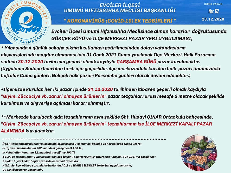 Koronavirus (Covid-19) salgınından ülkemizi ve vatandaşlarımızı korumak, salgının yayılmasını engellemek amacıyla İlçemiz Umumi Hıfzıssıhha