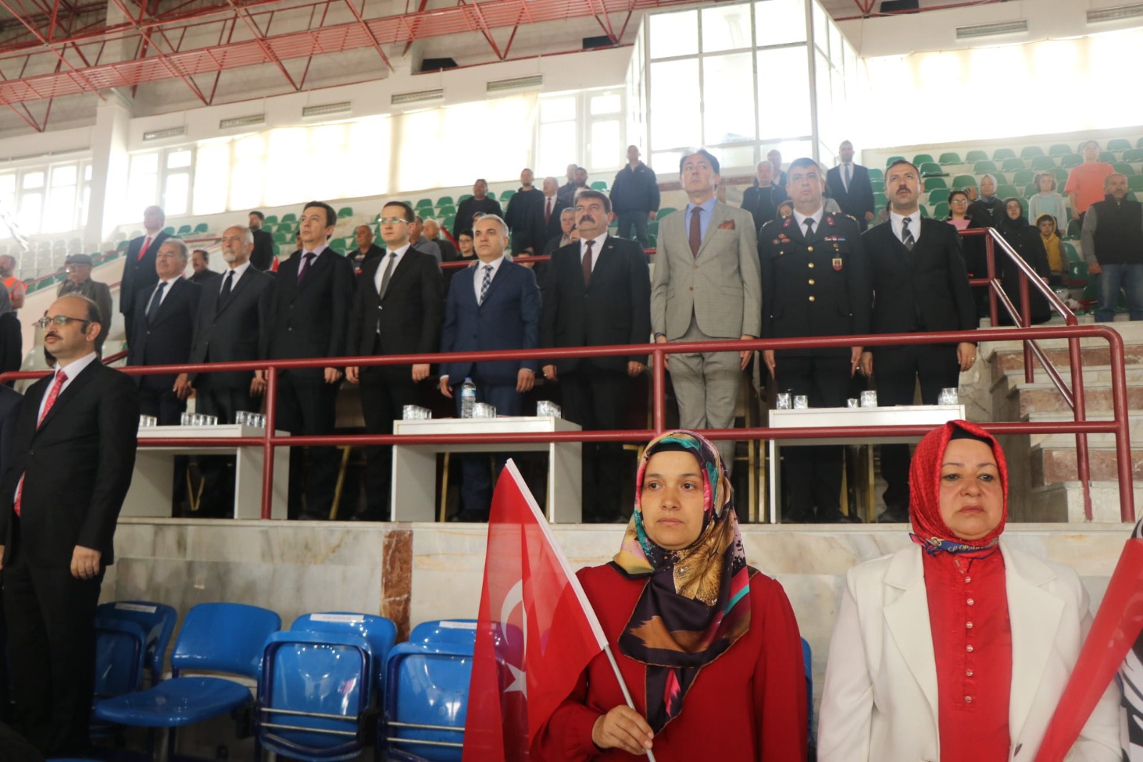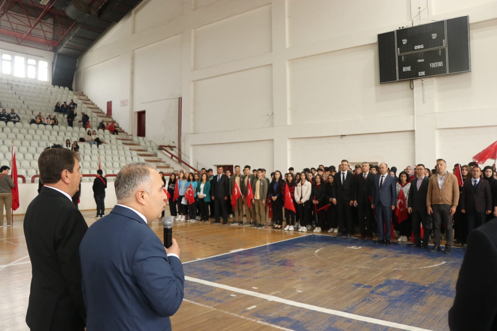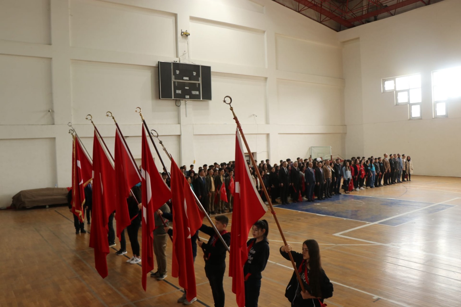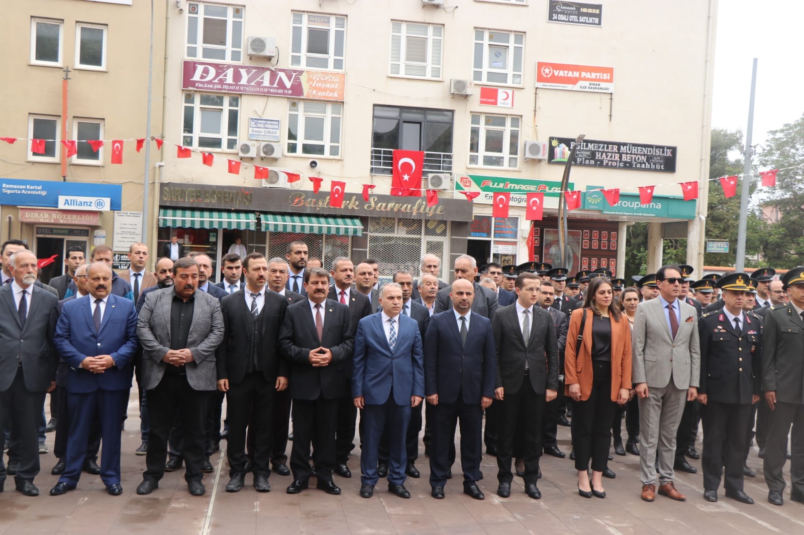 Cumhuriyet Meydanımızda düzenlenen çelenk sunma töreni ile başlayan programda Gençlik ve Spor Müdürlüğü çelenginin Atatürk Büstüne bırakılmasının ardından Saygı duruşunda bulunularak Belediye bandomuz eşliğinde İstiklal Marşımız okundu.