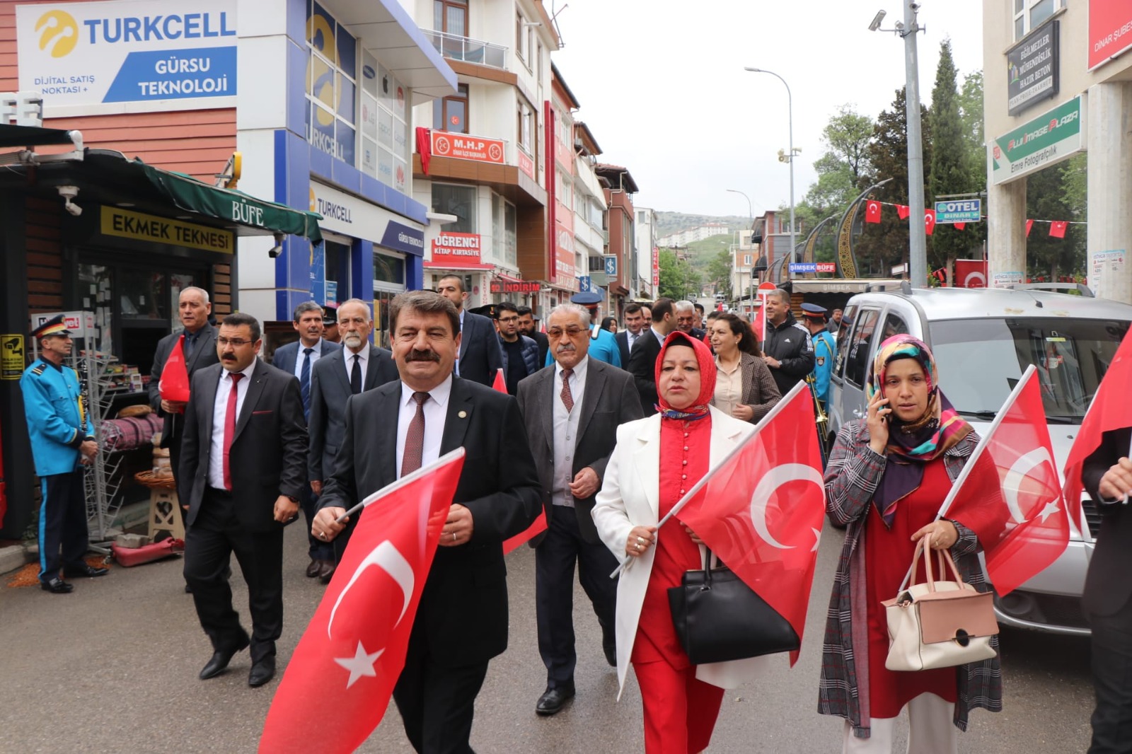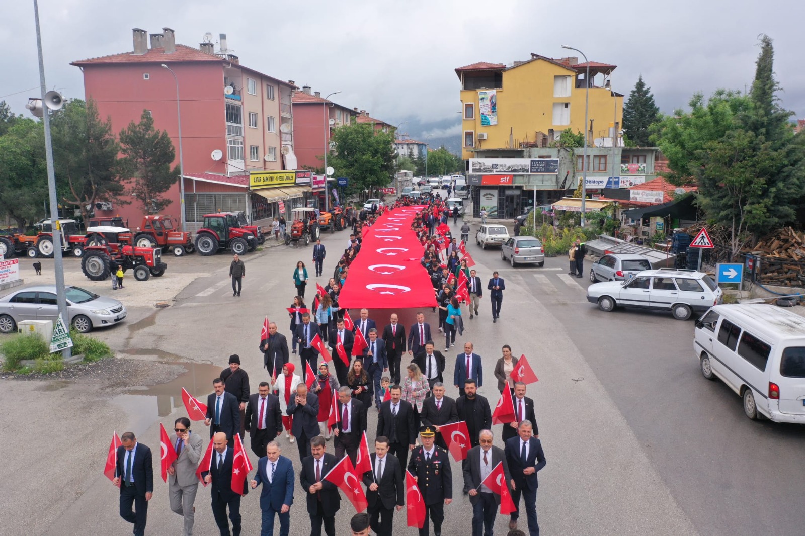Çelenk Sunma törenin akabinde ise Cumhuriyet Meydanımızdan Belediyemiz Kapalı Spor Salonuna kadar Dinar Kaymakamımız Kemal Duru, Dinar Belediye Başkanımız Nihat Sarı, protokol üyelerimiz ve geleceğimizin teminatı gençlerimizin eşliğinde 45 Metre uzunluğunda Şanlı Türk Bayrağımız ile Gençlik Yürüyüşümüzü gerçekleştirdik.