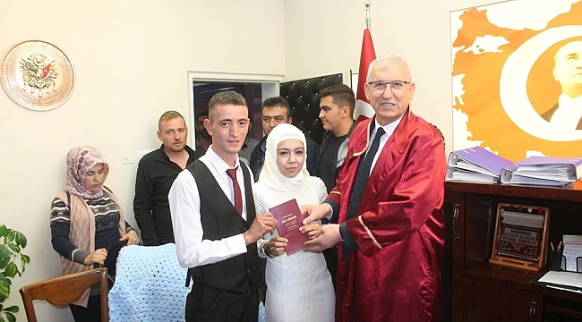 Emine GÜLEŞ ve Muzaffer TEZCAN çiftinin nikahını Belediye Başkanı Ayhan GÖNÜLLÜ kıydı.Ailenin toplumdaki önemine değinen Başkan GÖNÜLLÜ “Evliliklerde bir ömür boyu süren mutluluk ve birlikteliklerin temelinde, çiftlerin birbirlerine duyduğu saygı ve özen var. Her şeyden önce bu birlikteliğin sağlık, sıhhat ve huzur içerisinde devam etmesini temenni ediyor, sizlere mutlu bir aile yaşamı diliyorum” diyerek, çiftlere bir ömür boyu mutluluklar diledi. Başkan GÖNÜLLÜ evlilik cüzdanını çifte teslim ederek tebrik etti.