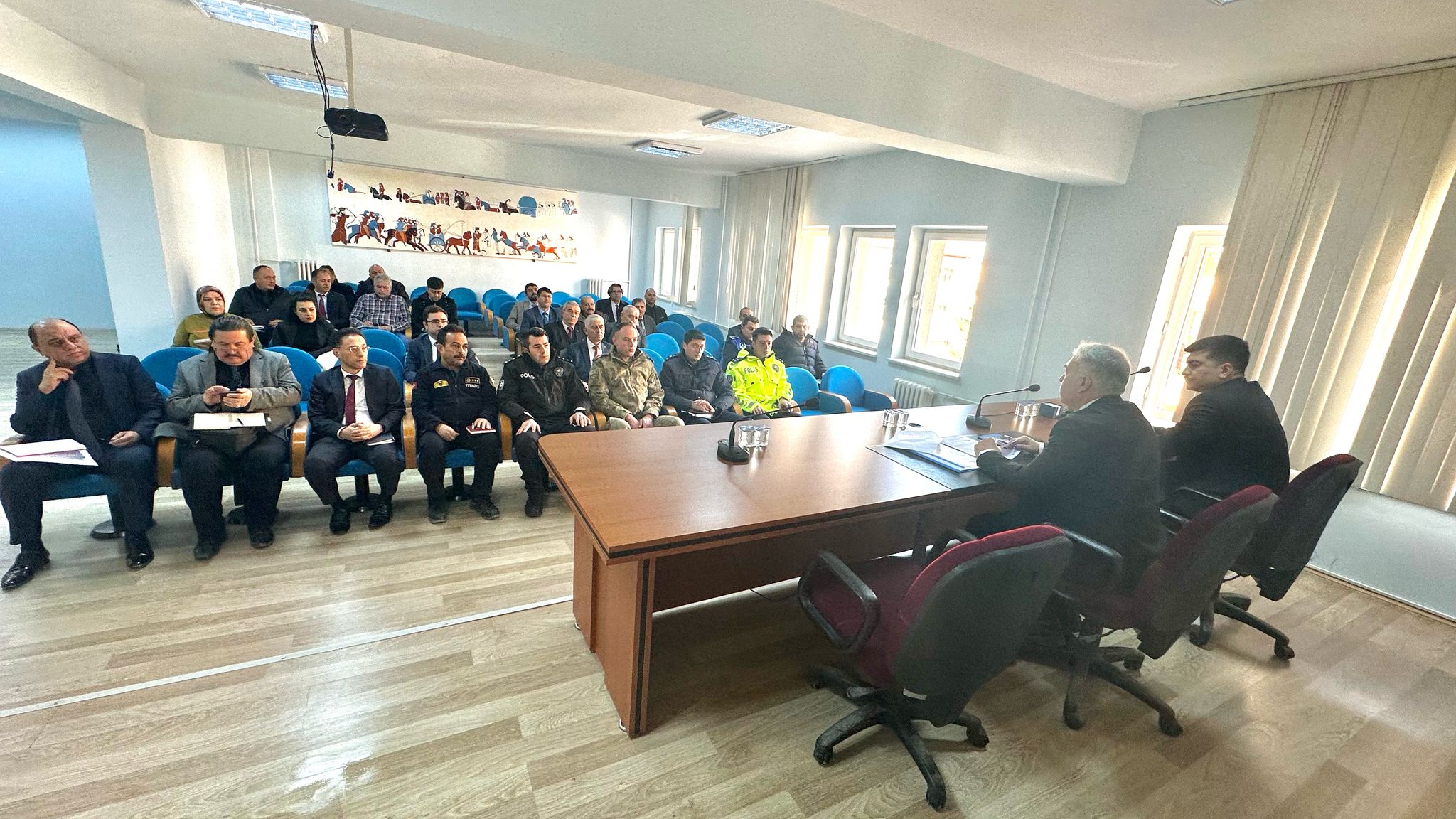 İlçe Hükümet Konağı toplantı salonunda Kaymakamımız Sayın Kemal DURU Başkanlığında, Kaymakam adayı Mücahit ÇETİN ve İlgili Kurum amirleri ve kurum personelinin katılımı ile İlçe İdare Şube Başkanları toplantısı yapıldı.