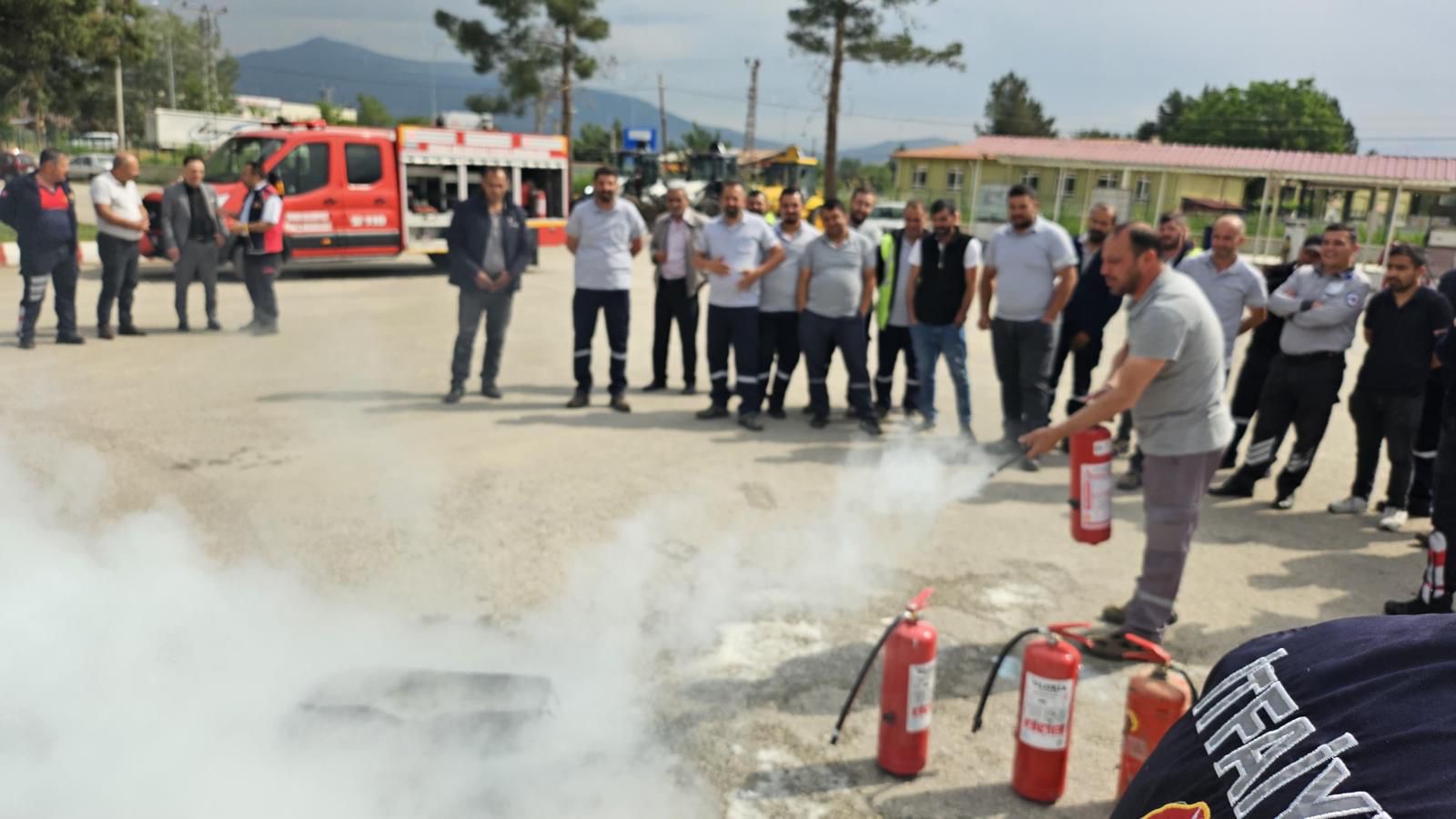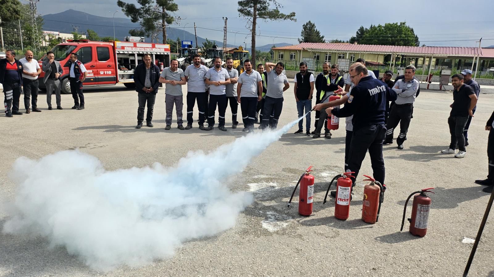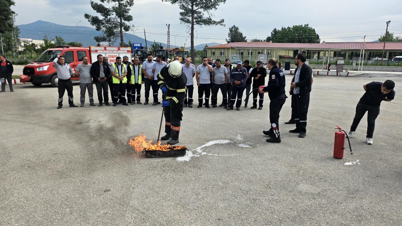 Eğitimlerde personele Meskun Mahal Yangınlarına ve Orman Yangınlarına müdahale, yangın türleri ve yangına müdahale şekilleri, müdahale öncesinde, anında ve sonrasında iş sağlığı ve güvenliği hakkında pratik ve teorik bilgilendirme yapıldı.Dinar Gündem Gazetesi