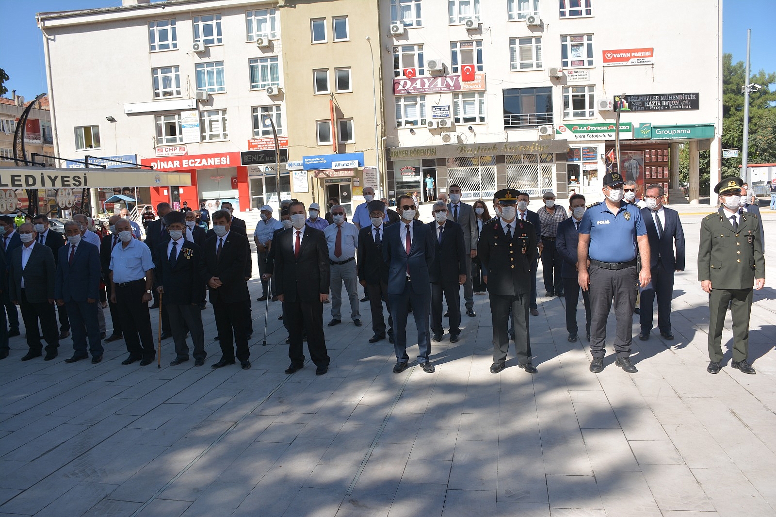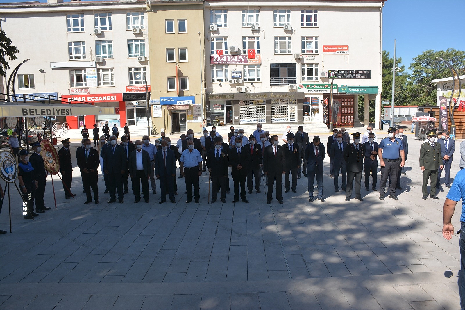 Sunuculuğunu Askerlik Şubesi Personeli Sevcan Solak’ın yaptığı programa; İlçe Kaymakamı Selami Kapankaya, Belediye Başkanımız Nihat Sarı, Cumhuriyet Başsavcısı Selman Eskiler, İlçe Jandarma Komutanı Yüzbaşı Necip Kacar, İlçe Emniyet Müdür v. Tolga Ar, İlçe Milli Eğitim Müdürü Ufuk Taşbaş, AK Parti İlçe Başkanı İdris Er, MHP İlçe Başkan v. Adnan Güzeldal , CHP İlçe Başkanı Ali Arıkan, Ticaret ve Sanayi Odası Başkanı Abdullah Bağırkan, Türkiye Harp Malulü Gaziler, Şehit, Dul ve Yetimleri Derneği Dinar İlçe Temsilcisi Hasan Ceylan, Türkiye Muharip Gaziler Derneği İlçe Temsilcisi Cengiz Kartal, Atatürkçü Düşünce Derneği Başkanı Kenan Özdemir, Belediye Meclis üyeleri, daire amirleri, Okul Müdürleri ve gaziler katıldı.