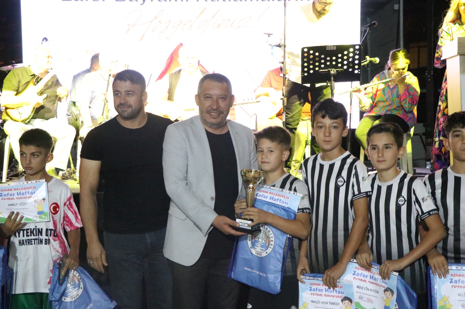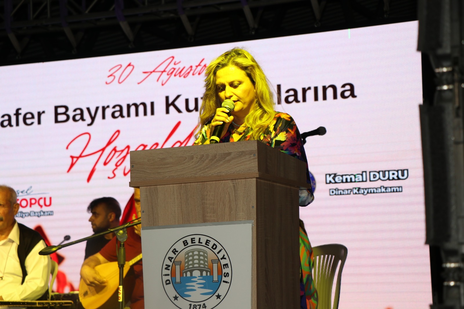 Belediyemiz ve İlçe kaymakamlığı Tarafından Düzenlenen 30 ağustos Zafer Bayramı Haftası Etkinleri İlçemizde Coşkuyla Başladı.30 Ağustos Zafer Bayramı Haftası nedeniyle düzenlenen Program, saygı duruşu ve İstiklal Marşı'nın okunmasıyla başladı.Belediye Başkanımız Veysel Topçu günün anlam ve önemini belirten bir konuşma gerçekleştirdi.Belediye Başkanımız Veysel Topçu Gerçekleştirdiği Konuşmada; “Bu tarihi zaferi büyük bir gurur ve coşku ile kutlamak için Bir Aradayız. Zafer Haftası boyunca sürecek etkinliklerle, bu büyük zaferin ruhunu yaşatmaya devam edeceğiz. Bugüne Kadar Şehadete eren Tüm şehitlerimizin Başta Başkomutan Gazi Mustafa Kemal Atatürk olmak üzere Rahmet ve Minnetle anıyorum”dedi.30 Ağustos Zafer Bayramı Haftası Kapsamında Yapılan Etkinlik, Dinar Marsyas Kültür ve Musiki Derneği'nin verdiği konserle devam etti.Akabinde sahne alan Dinar Marsyas Halk Oyunları Gençlik Spor Kulübü Derneği, sergilediği folklor gösterisi ile izleyicilere unutulmaz anlar yaşatırken, Gecenin sonunda sahne alan Grup Gentlemen ise katılımcılara müzik ziyafeti sunarak, vatandaşlarımızın keyifli vakit geçirmesini sağladı.Programa, Dinar Belediye Başkanımız Veysel Topçu ve kıymetli eşi Aydan Topçu'nun yanı sıra Başmakçı Belediye Başkanı Selçuk Gönüllü, Cumhuriyet Halk Partisi İl Genel Meclis Üyesi Nihat Çalışkan, Cumhuriyet Halk Partisi İlçe Başkanı Ali Arıkan, Milliyetçi Hareket Partisi İlçe Başkanı Mustafa Karahan, Büyük Birlik Partisi İlçe Başkanı Nuri Çetin, Dinar Askerlik Şube Başkanı Mehmet Han Bekiroğlu, Dinar Ticaret ve Sanayi Odası Yönetim Kurulu Başkanı Veli Özcan, Dinar Esnaf ve Sanatkarlar Odası Başkanı ve Afyonkarahisar Esnaf ve Sanatkarlar Odaları Birliği Başkanvekili Sabri Can Bekle, Dinar Sebzeciler ve Pazarcılar Odası Başkanı Mustafa Gökçe, Dinar Belediye Spor Kulübü Başkanı Ahmet Uğur ve belediye meclis üyeleri Oktay Sayın, Ali Uluağaç, Engin Gülbeyaz ve Hayati Karakoç katıldı. Vatandaşlar da etkinliğe yoğun ilgi gösterdi.30 Ağustos Zafer Bayramı Haftası nedeniyle düzenlenen bu anlamlı etkinlik, ilçemizde birlik ve beraberlik içinde büyük bir coşku ve gururla kutlandı.