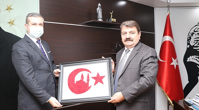 Afyonkarahisar Belediyesi Kültür ve Sosyal İşler Müdürü İhsan Akar, Afyonkarahisar Belediyesi Proje Dış İlişkiler Koordinatörü ve Afyonkarahisar Kocatepe Üniversitesi Bolvadin MYO Arş. Grv. Dr. Fatih Bıyıklı ve Afyonkarahisar Belediyesi Gastronomi ekibi Dinar Belediye Başkanımız Nihat Sarı’ya ziyarette bulundu.
