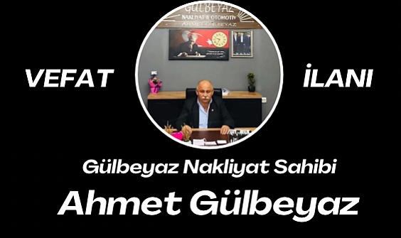 İlçemizin Değerli Esnafı Ahmet Gülbeyaz Vefat Etti!Dinar’ımızın değerli esnaflarından, Gülbeyaz Nakliyat sahibi Ahmet Gülbeyaz’ın ani vefatını derin bir üzüntüyle öğrenmiş bulunuyoruz. Kalp krizi sonucu hayata gözlerini yuman merhum Ahmet Gülbeyaz’a Allah’tan rahmet; kederli ailesine, yakınlarına ve tüm sevenlerine sabır ve başsağlığı diliyoruz.Merhumun ilçemizdeki yeri her zaman hatırlanacak, çalışkanlığı ve mütevazılığıyla gönüllerde yaşamaya devam edecektir. Mekânı cennet olsun.Dinar Gündem Gazetesi