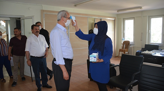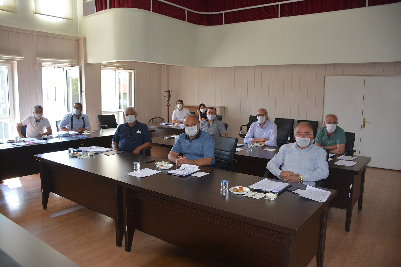 Toplantı girişinde meclis üyelerimize ateş ölçümü yapılarak dezenfektan ve maske dağıtımı yapıldı.