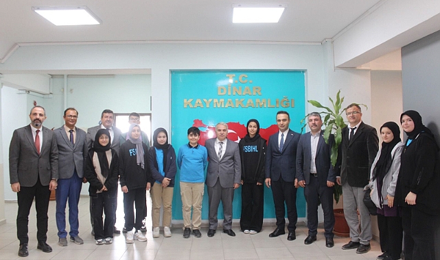 Dinar İlçe Kaymakamımız Sayın Kemal DURU imam hatip okullarının kuruluşunun 73. Yıldönümü sebebiyle İlçe Milli Eğitim Din Öğretimi Şube Müdürü Fahrettin AYGÜNDÜZ, İmam Hatip Lisesi Müdürü Mitat COŞKUN, Şehit İzzet Taşbaş İHO Müdürü Murat Nail ÜNER,Şehit Şükrü Bayrakcı Hafızlık İHO Müdürü Mehmet ÇETİN, İHL Müdür Başyardımcısı Mehmet SALIK ve öğrencilerini kabul etti. İmam Hatip okullarının kuruluş yıldönümünü kutlayan Kaymakamımız öğrencilerimize ikram ve tavsiyelerde bulundu. Öğrenciler de desteklerinden dolayı kaymakamımıza teşekkürlerini sunarak hediye takdiminde bulundular.
