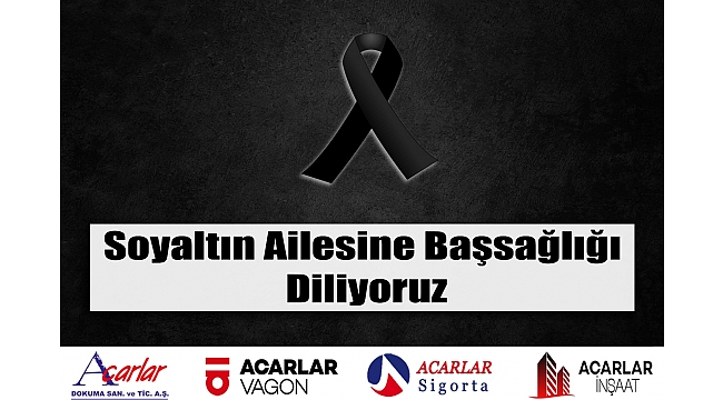 İlçemiz Sanayicilerinden iş insanı Mehmet Soyaltın'ın oğlu ve Nedim Soyaltın'ın abisi Mümtaz Soyaltın'ın vefatını öğrenmiş bulunmaktayız. Acarlar A.Ş ailesi olarak merhuma Yüce Allah'tan rahmet, Soyaltın ailesine ve yakınlarına başsağlığı diliyoruz.Dinar Gündem Gazetesi