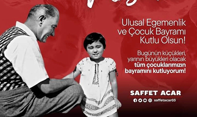 İş İnsanı Saffet Acar, 23 Nisan Ulusal Egemenlik ve Çocuk Bayramı nedeniyle kutlama mesajı yayınladı. İş İnsanı Saffet Acar yayınladığı mesajında 23 Nisan'ın