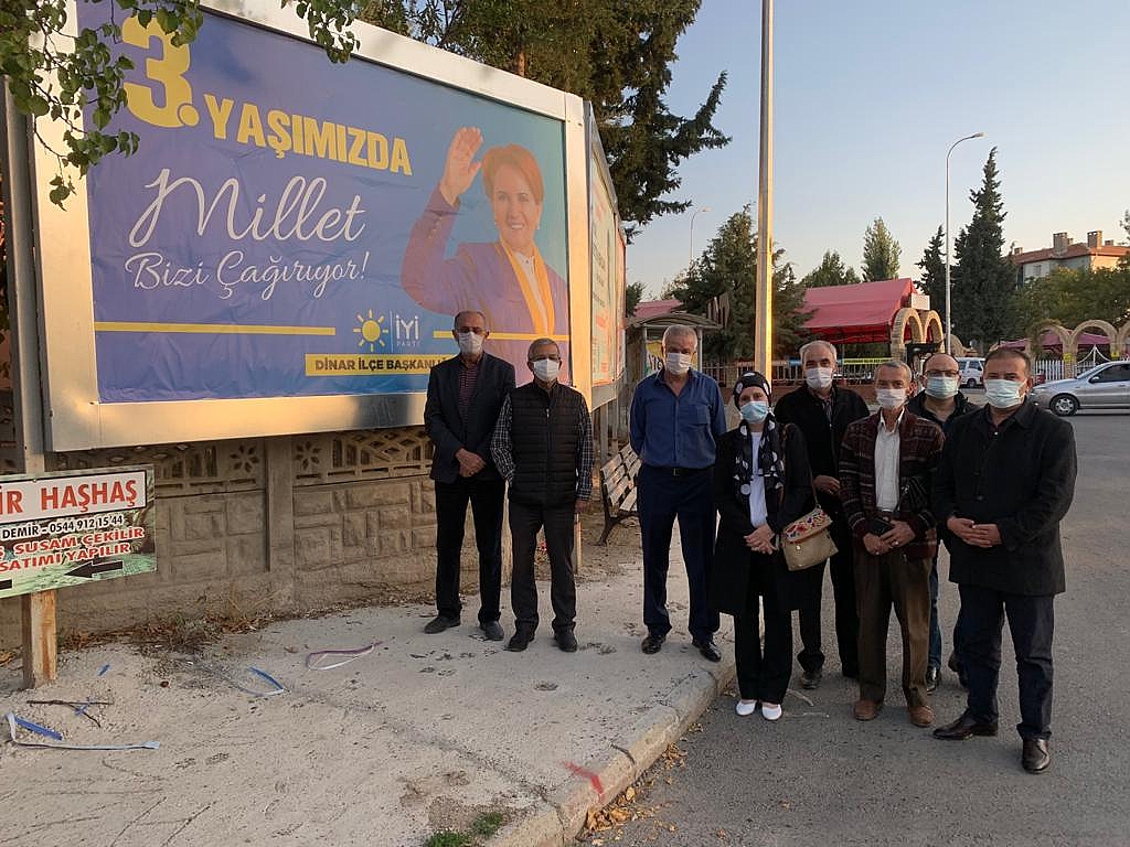Biz İYİ Partililer, Genel Başkanımız Meral Akşener Hanımefendi’nin önümüzde koyduğu hedefe, gösterdiği çizgiden ayrılmadan ve hiç durmadan çalışacağımızdan kimsenin şüphesi olmasın. Dinar’ımız iyi olacak, Türkiye’miz iyi olacak… Artık hiçbir şey eskisi gibi olmayacak. Bu duygu ve düşüncelerle partimizin 3. Kuruluş yıl dönümünü kutlar, hayırlara vesile olmasını dileriz.