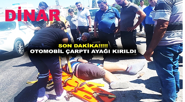 Hikmet S. B.'nin kullandığı 03 ACC 326 plakalı otomobilin çarpması sonucunda Yusuf Y. yaralandı.İhbar üzerine kaza yerine gelen 112 sağlık ekipleri otomobilin çarpması üzerine yaralanarak yerde yatan ve ayağının kırıldığı tahmin edilen Yusuf Y.’e yaptıkları ilk müdahalenin ardından Dinar Devlet Hastanesine götürdü. Dinar Devlet Hastanesinde doktorlar tarafından tedavi altına alınan Yusuf Y.’nin ayağının kırıldığı belirlendi.Kaynak Dinar Gündem Gazetesi