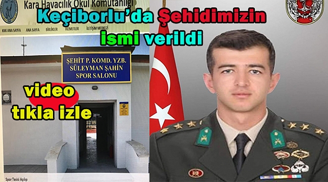 Isparta’nın Keçiborlu ilçesinde Keçiborlu Sivil Havacılık Yüksekokulu Spor Salonuna Dinarlı Şehidimiz Komando Yüzbaşı Süleyman Şahin'in İsmi verildi.Dinarlı şehidimizin ismini okullarına veren Keçiborlu halkına ve emeği geçen yetkililere, Şehidimizin ailesi ve Dinar Gündem Gazetesi olarak çok teşekkür ederiz.Dinar ilçemizde de MHP Dinar İlçe Başkanı Mustafa Karahan’ın girişimleri ile Fatih Mahallesi (TOKİ) konutlarında yeni yapılan okulumuza da Şehidimiz P. Komando Yüzbaşı Süleyman Şahin’in ismi verilmesi için çalışmalar başlatıldı.Dinar Gündem Gazetesiİlginizi Çekebilir