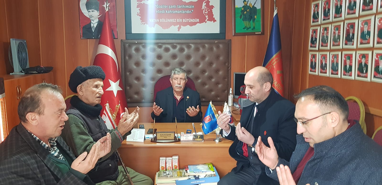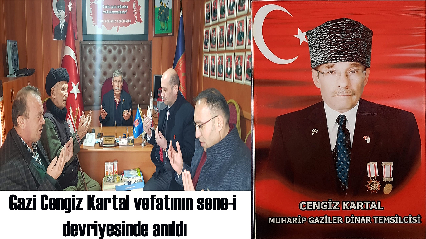 Kıbrıs Gazisi Kartal vefatının sene-i devriyesinde dualarla anıldıKıbrıs Gazisi ve Türkiye Muharip Gaziler Derneği Dinar Temsilcisi olarak görev yapan Gazi Cengiz Kartal vefatının sene-i devriyesinde dualarla anıldı.Türkiye Harp Malulü Gaziler, Şehit Dul ve Yetimleri Derneği Afyonkarahisar Şube Başkanı İsmail Kumartaşlı, Dinar Temsilcisi Hasan Ceylan, Türkiye Muharip Gaziler Derneği Dinar Temsilcisi Tevfik Kılıçkaya ve gazilerimizin katılımıyla Dernek binasında gerçekleşen anma programında Gazimizin ve tüm şehitlerimizin ruhuna ithafen Kuran-ı Kerim okunarak dualar edildi.