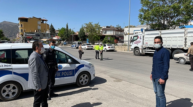 17 Günlük Tam kapanma döneminde sokağa çıkma kısıtlaması denetimleri İlçe Merkezinde İlçe Emniyet Müdürlüğü Ekiplerince, Şehirlerarası yollarda ise Bölge Trafik Denetleme Ekiplerince devam ediyor. Kaymakamımız Selami Kapankaya İlçe Emniyet Müdürlüğü ve Bölge Trafik Ekiplerinizi ziyaret ederek sağlığımız için sokağa çıkma yasağına uyulması gerektiğini ifade ederek yerinde denetlemelerde bulundu ve kolaylıklar diledi.