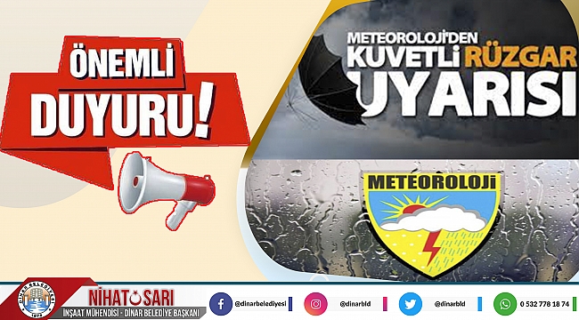 Meteorolojiden Önemli Duyuruİlçemizde bu geceden itibaren yer yer kısa süreli fırtına ve şiddetli rüzgâr beklenmektedir.Ulaşımda aksamalar, soba, doğalgaz kaynaklı zehirlenmeler ve çatı uçması gibi olumsuzluklara karşı vatandaşlarımızın dikkatli ve tedbirli olması ilanen duyurulur.