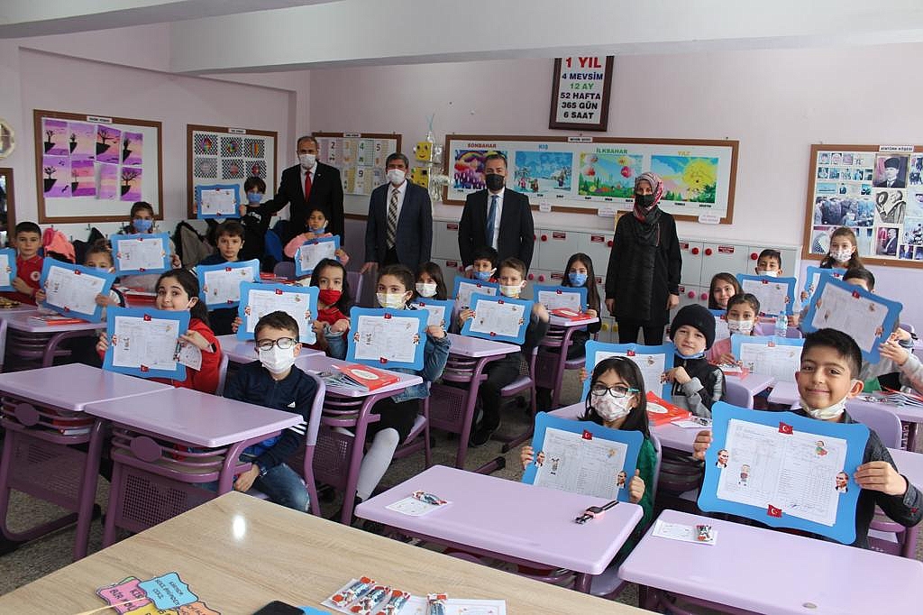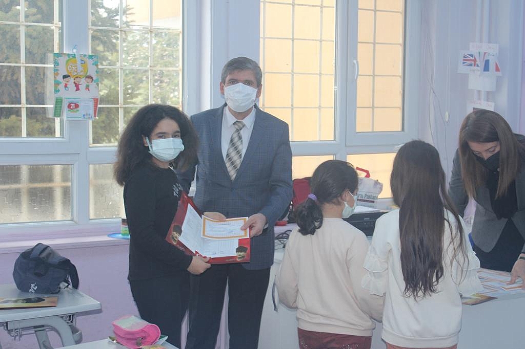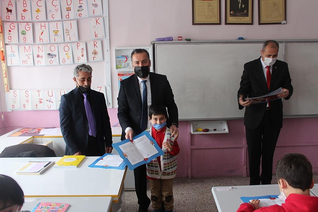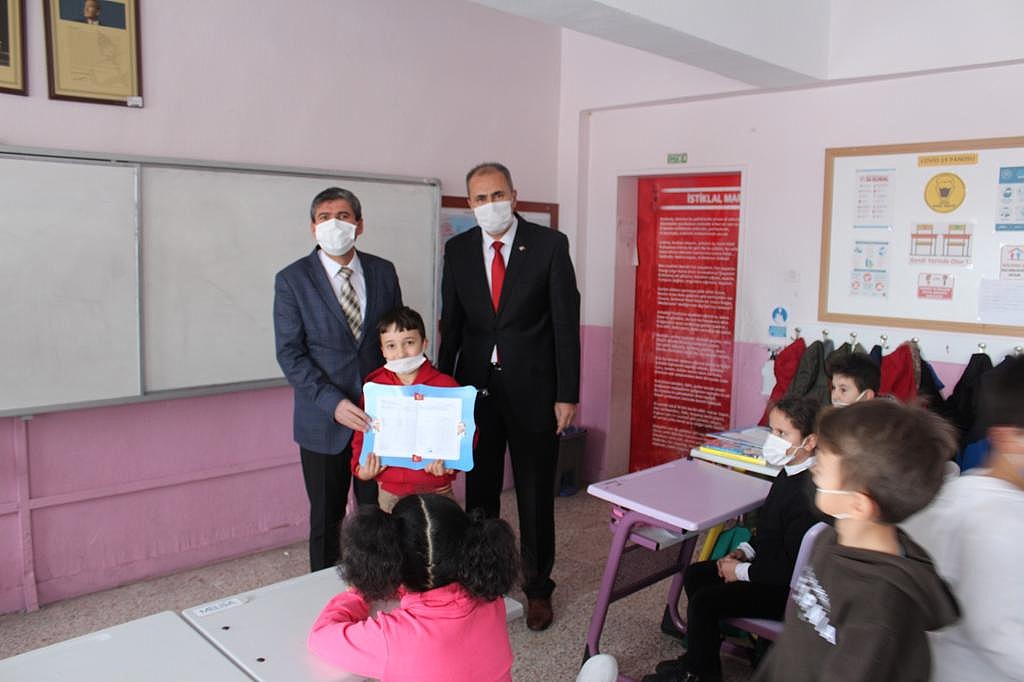 2021-2022 eğitim-öğretim yılı birinci döneminin sona ermesi dolayısıyla okullarımızda karne dağıtımına katılan Kaymakamımız Selami Kapankaya, İlçe Milli Eğitim