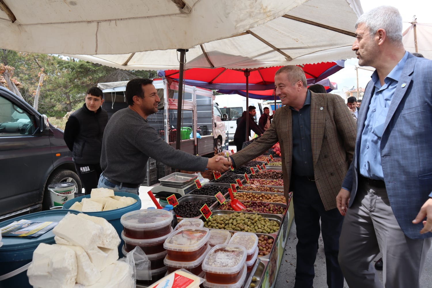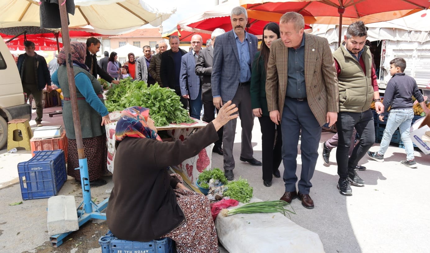 İYİ Parti Afyonkarahisar Milletvekili Adayı Avukat Hakan Şeref Olgun, Bolvadin ilçesinde semt pazarını gezdi köylerde vatandaşlarla buluştu.