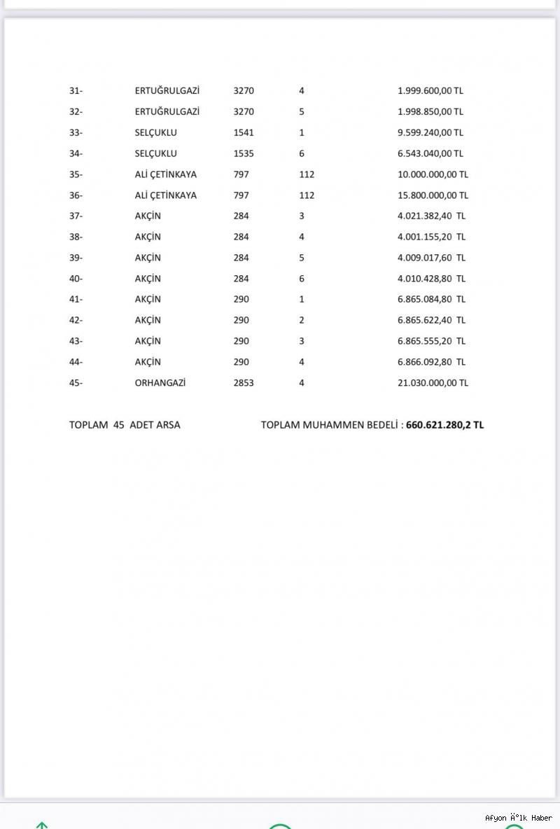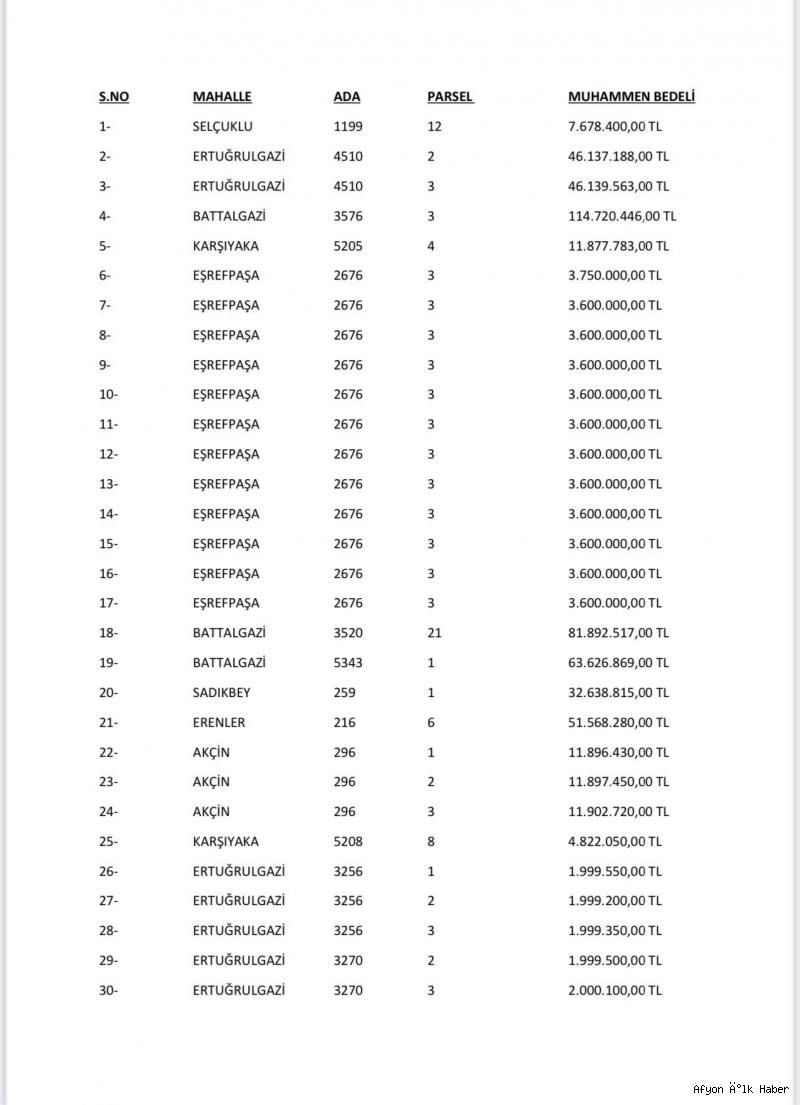 "Soru şu: Afyonkarahisar Belediyesi bir yıldır hiçbir hizmet üretmeden kendilerinin tespitine göre muhammen bedeli 660 milyon TL olan aşağıdaki 45 parsel taşınmazı sattı mı? Satmadı mı?
