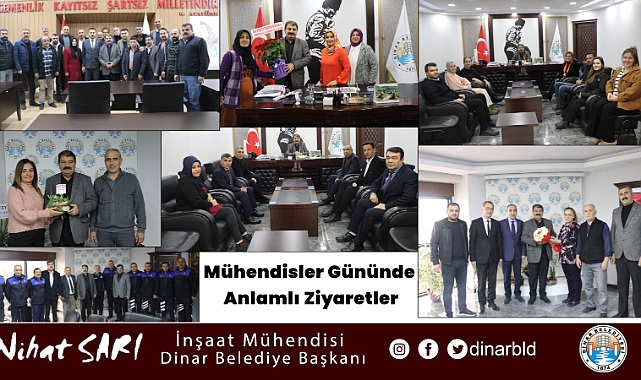 Gelen misafirlerimizin tebriklerini kabul ederek bir süre sohbet eden Dinar Belediye Başkanımız Nihat Sarı, bu anlamlı günde hatırlanması dolayısıyla yaşadığı mutluluğu dile getirerek, sosyal medya üzerinden mesaj atarak, arayarak, çiçek göndererek ve ziyaretine gelerek Mühendisler gününü kutlayan herkese teşekkür ettiğini belirtip, ilçemize birlik ve beraberlik içerisinde mühendis bir belediye başkanı olarak güzel hizmetler yapmaya devam edeceğini ifade etti.