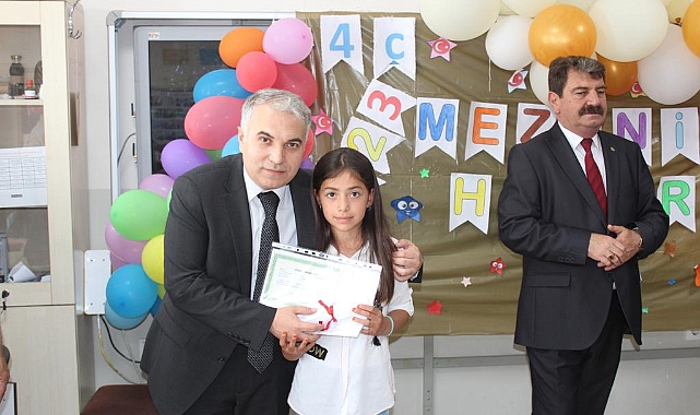Kaymakamımız, Dinar Belediye Başkanımız Nihat Sarı ve İlçe Milli Eğitim Müdürü Ufuk Taşbaş ile birlikte katıldığı programda öğrencilerimizin karnelerini ve belgelerini takdim ederek öğrencilerimizi tebrik etti.