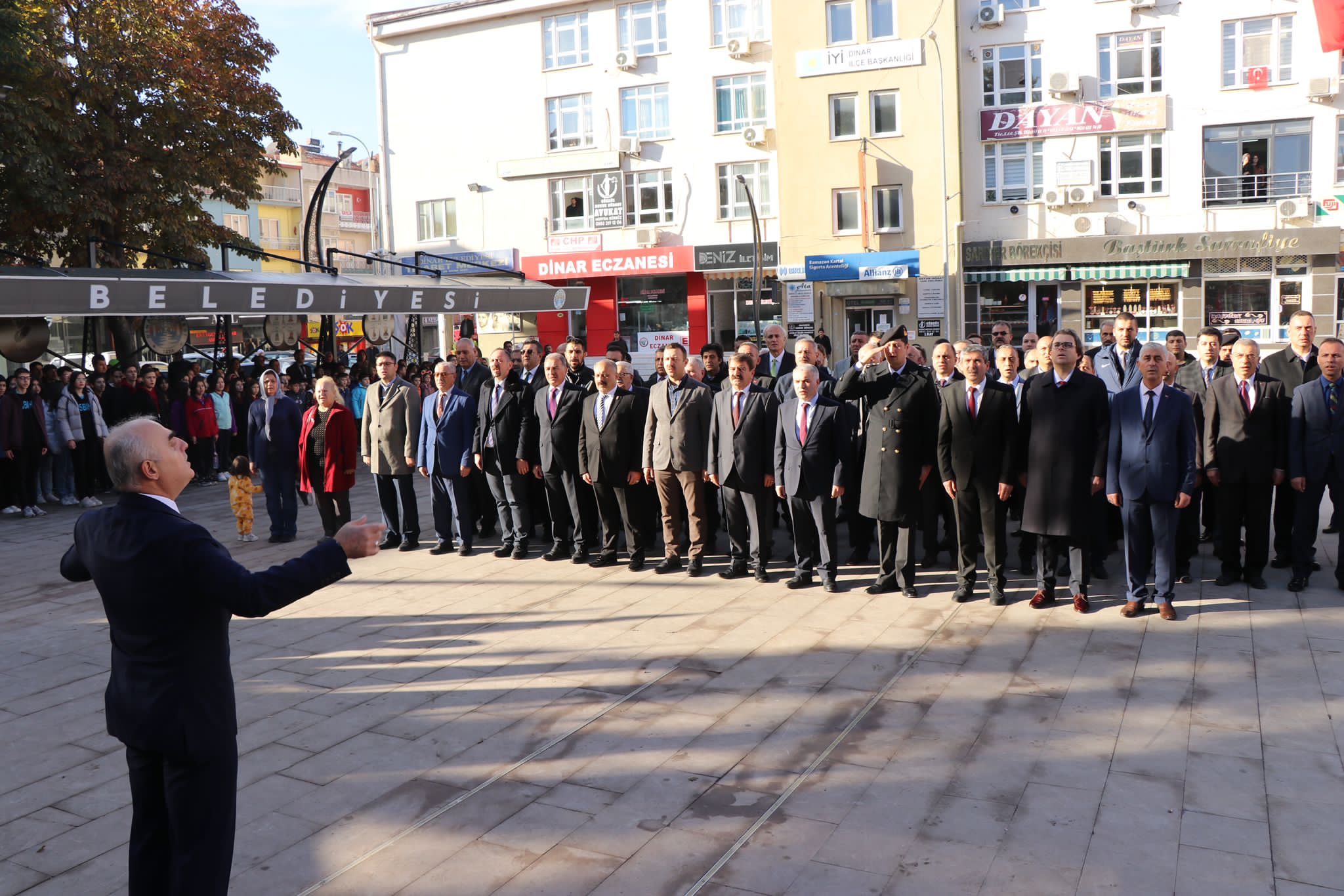 Dinar Belediye Başkanımız Nihat Sarı, 24 Kasım Öğretmenler Günü dolayısıyla ilçemizde düzenlenen programlara katıldı. Dinar Belediye Başkanımız Nihat Sarı, Ilk olarak Cumhuriyet Meydanımızda düzenlenen Çelenk sunma töreni öncesinde törene katılan öğretmenlerimizin gününü kutladı.Milli Eğitim Müdürlüğü çelenginin Atatürk Anıtına bırakılmasının ardından saygı duruşunda bulunularak Belediye Bandomuz eşliğinde İstiklal Marşımız okundu.Belediye Başkanımız Nihat Sarı Akabinde ise Belediyemiz Kültür Salonunda gerçekleşen programa katıldı. saygı duruşunda bulunulması ve akabinde İstiklal marşımızın okunmasıyla başlayan programda günün anlam ve önemini belirten konuşmalar gerçekleştirildi. Şiir dinletileri, orotoryo gösterisi ve müzik dinletilerinin gerçekleşmesinin ardından yarışmalarda dereceye giren öğrencilere ve öğretmenlere İlçe Kaymakamımız Kemal Duru, Dinar Belediye Başkanımız Nihat Sarı ve Milli Eğitim Müdürü Ufuk Taşbaş tarafından hediyeleri takdim edildi.Dinar Gündemİlginizi Çekebilir