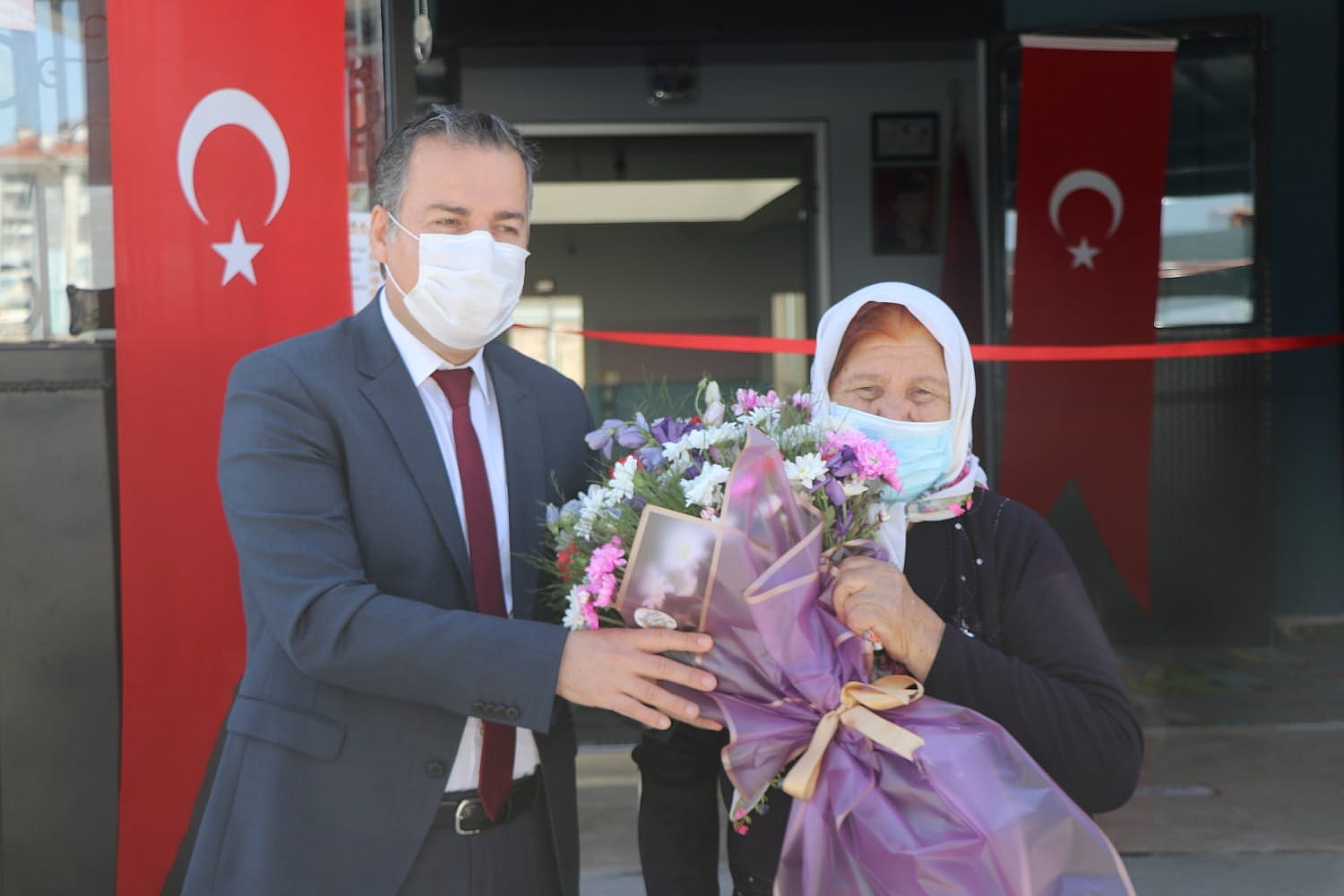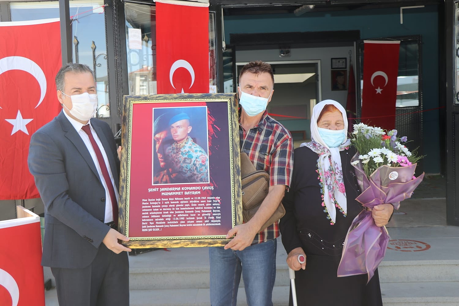 Konuşmaların ardından İlçe Kaymakamı Selami Kapankaya ve Dinar Belediye Başkanımız Nihat Sarı tarafından şehidimizin ailesine hediye takdimi gerçekleştirildi. Hediye takdiminin ardından açılış kurdelesini İlçe Kaymakamı Selami Kapankaya, Dinar Belediye Başkanımız Nihat Sarı, Şehidimizin Babası ve Annesi kesti.