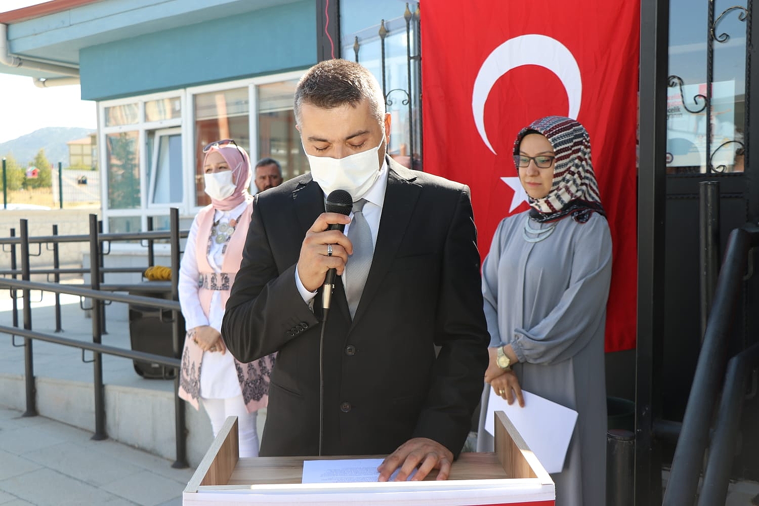 Şehit Muhammet Bayram Anaokulunda düzenlenen tören Saygı Duruşunda bulunulması ve akabinde İstiklal Marşının okunmasıyla başladı.