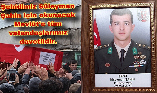 Şehidimiz Süleyman Şahin için okutulacak Mevlit'e tüm vatandaşlarımız davetlidir