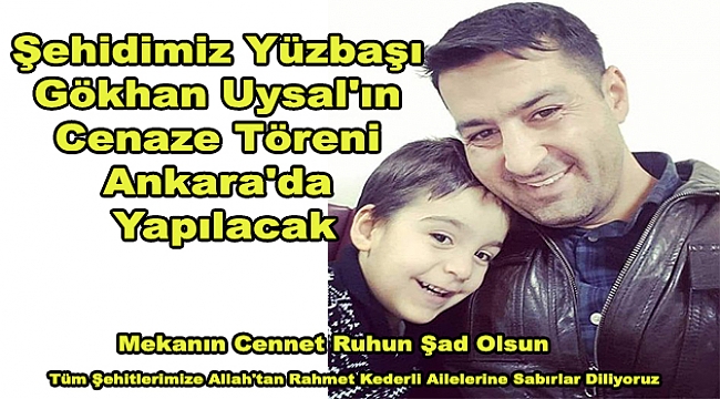 Şehidimiz Yüzbaşı Gökhan Uysal'ın Cenaze Töreni Ankara'da Yapılacak