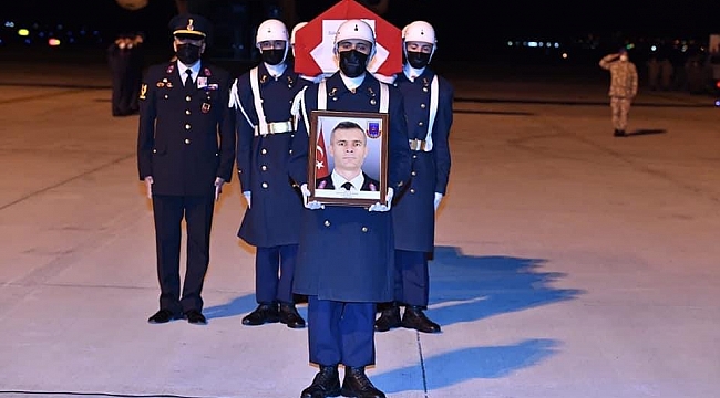 Suriye’de el yapımı patlayıcının imhası sırasında şehit düşen Kahramanımız J. Asb. Kd. Bçvş. Süleyman Demirel'in naaşı Çardak Havalimanında düzenlenen