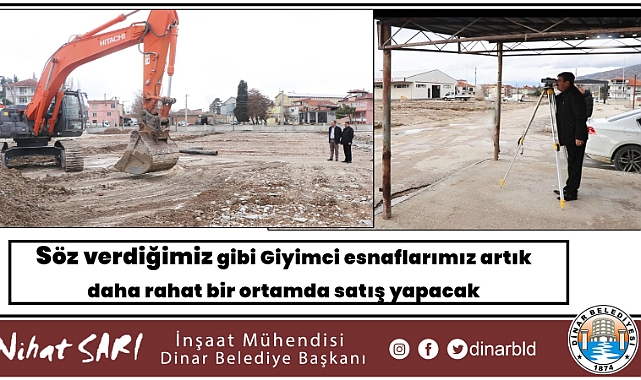 Söz verdiğimiz gibi Giyimci esnaflarımız artık daha rahat bir ortamda satış yapacak Dinar Belediye Başkanımız Nihat Sarı’nın Salı Pazarı Revize