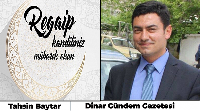 Dinar Gündem Gazetesi İmtiyaz Sahibi Tahsin Baytar Regaip Kandili dolayısıyla bir mesaj yayımladı. Dinar Gündem Gazetesi İmtiyaz Sahibi Baytar yayımladığı me