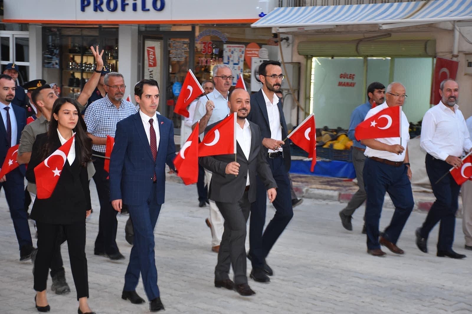 Türkiye Aşkına15 Temmuz Demokrasi ve Milli Birlik günü kapsamında düzenlenen program Kaymakamımız Sayın Sercan Sakarya, Belediye Başkanımız Sayın İsmail Taylan, Cumhuriyet Başsavcısı Vekilimiz Sayın Havva Gazan, Jandarma Komutanımız Bilal Ceylan, Emniyet Amirimiz Gökhan Durak, İlçe protokolü ve hemşehrilerimizin kortej yürüyüşü ile başladı. Program alanına geçildiğinde saygı duruşu ve İstiklal marşımızın okunmasının ardından kuran tilaveti okundu. Kaymakamımız Sercan Sakarya konuşmasının ardından ilçemiz öğrencileri şiir ve kompozisyonlarını okudular.