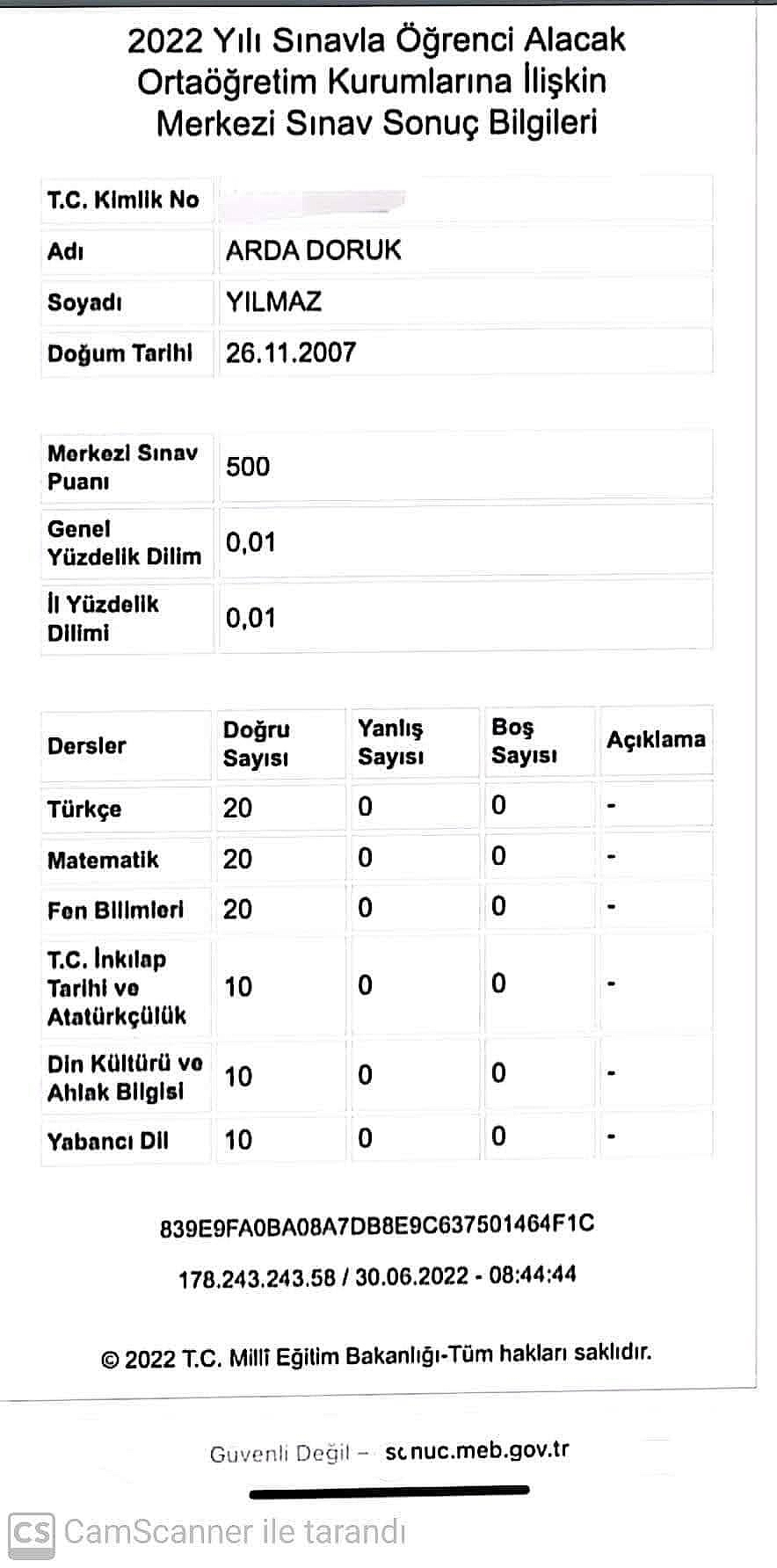 Türkiye Birincisi Arda Doruk LGS sınavında 500 tam puan aldı